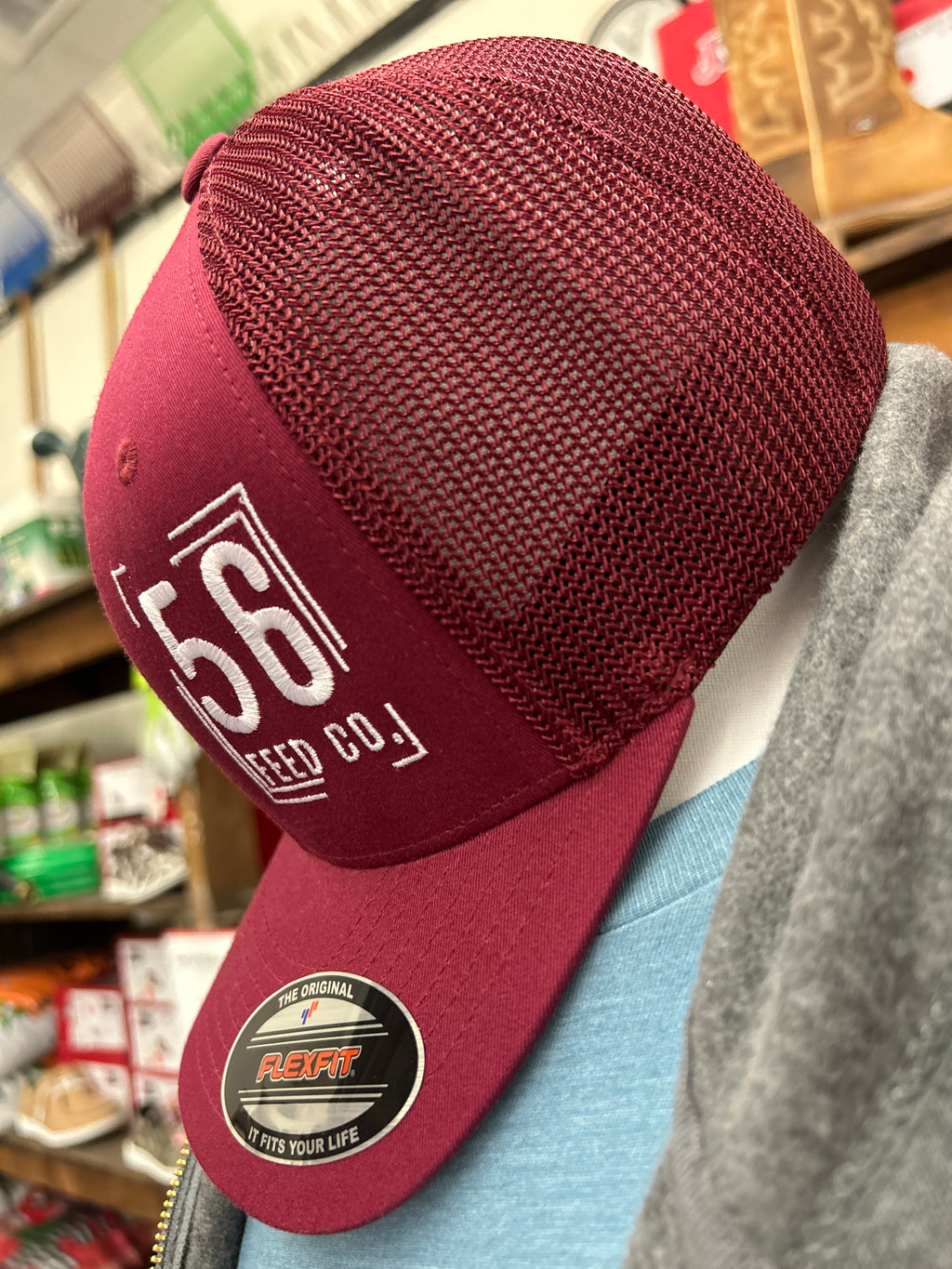 56 Feed Co l Cranberry with White Thread Logo Flexfit 6511 Trucker Cap [OSFM]