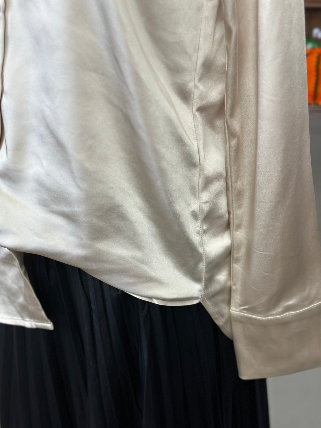 Women's Off White Round Neck Long Sleeve Curved Hem Top