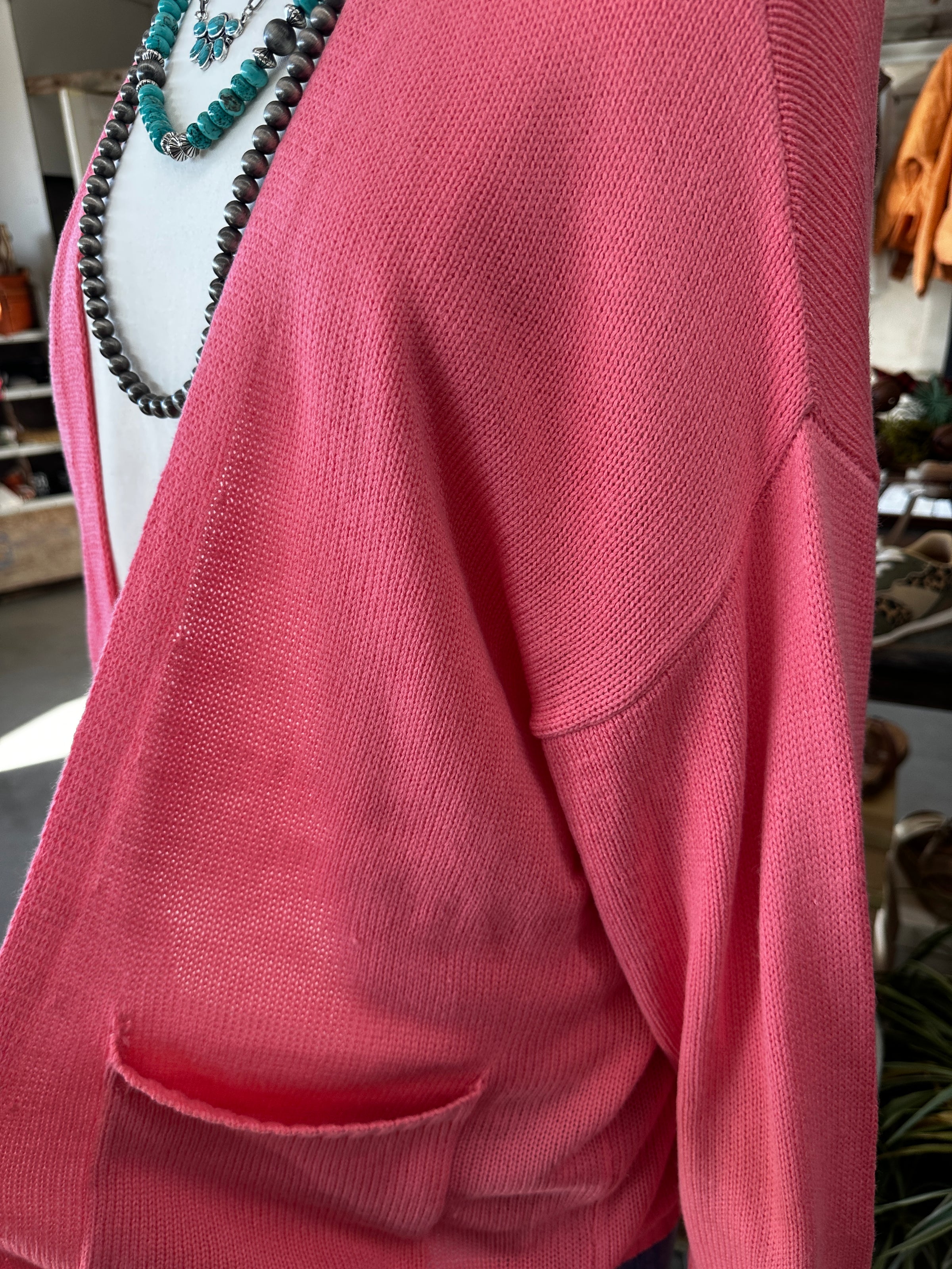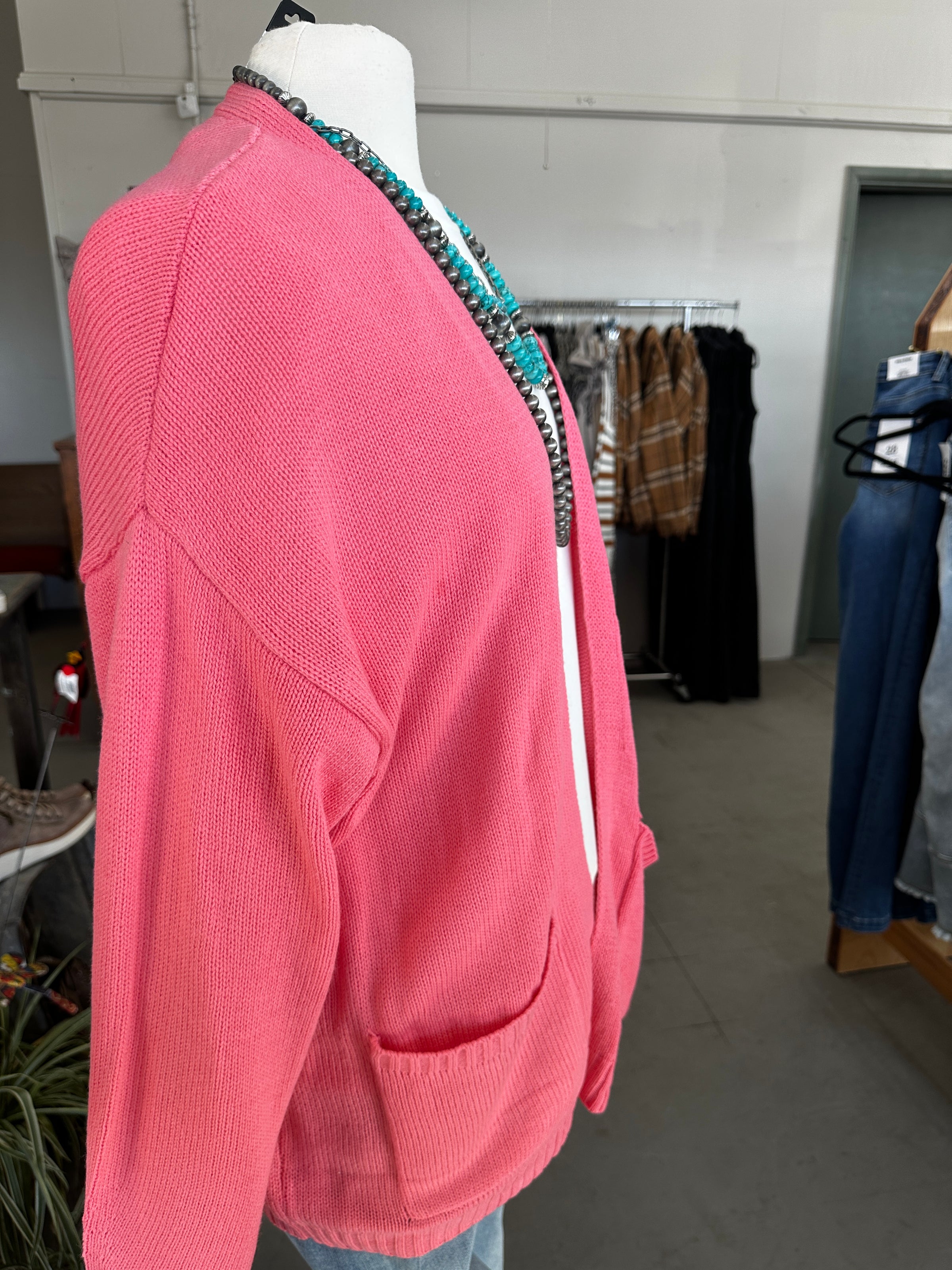 Women's Taffy Pink Oversized Open Front Cardigan with Pockets