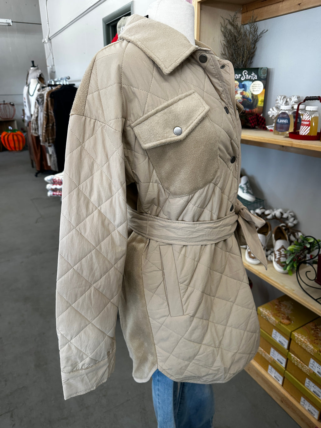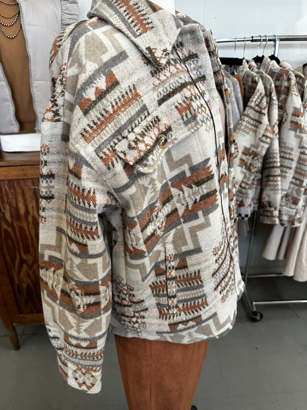 Women's Neutral Tone Ivory + Rust Aztec Shacket