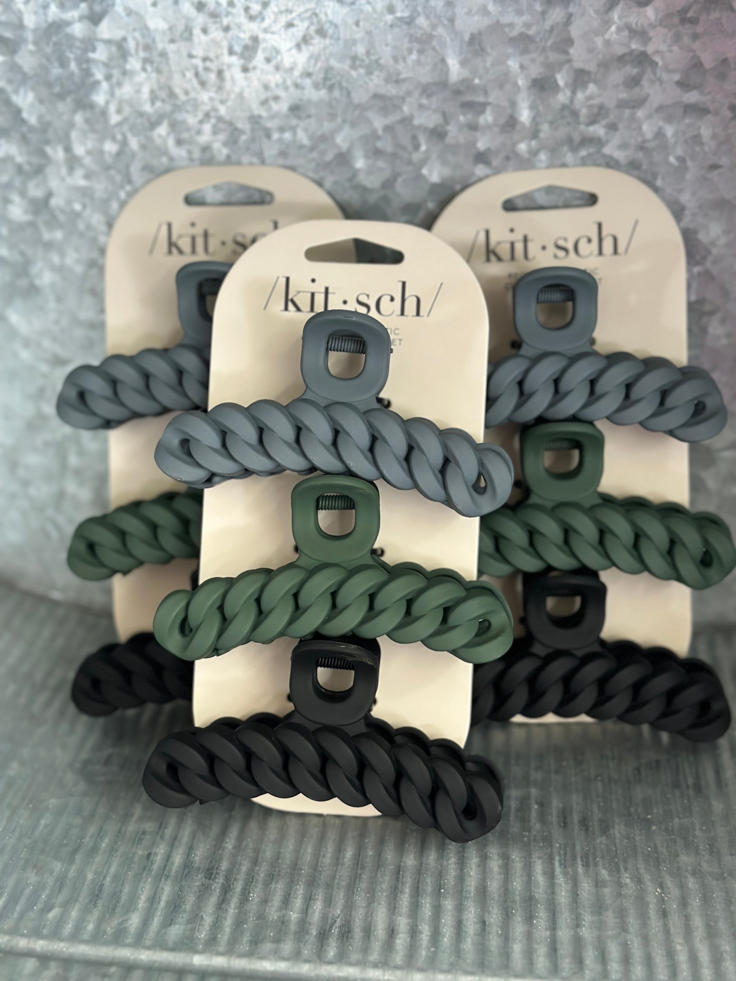 Kitsch Black/Moss Eco-Friendly Chain Claw Clip 3pc Set