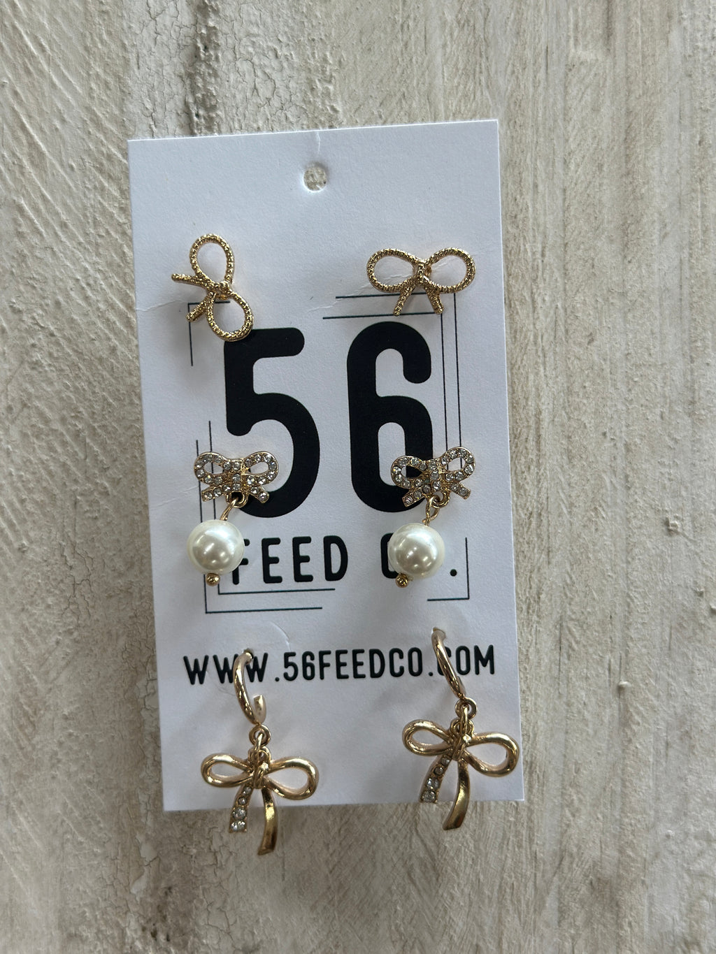 Earring | Gold + Pearl Bow Set of 3 Studs