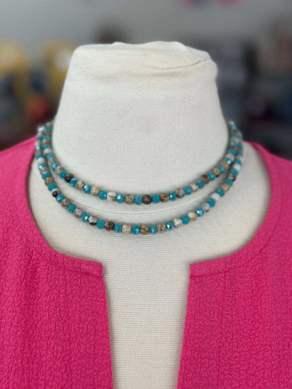 Necklace | Turquoise + Marble Faceted Double Layer Necklace and Small Dangle Earring Set