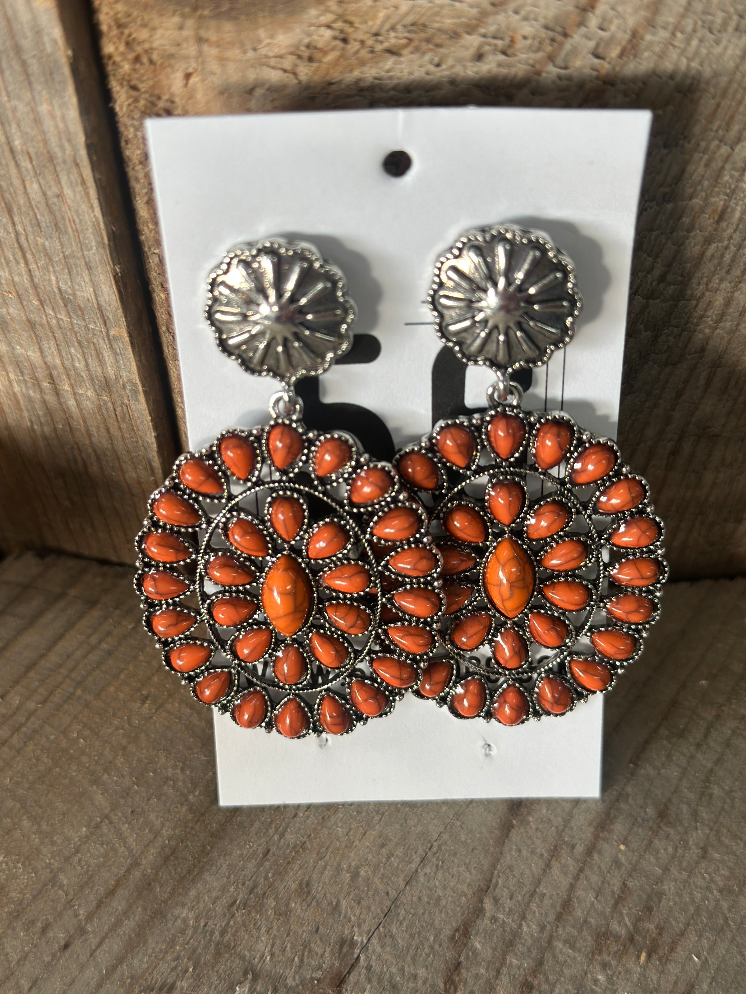 Earring | Silver Concho Spur Rowel Stud with Circle Floral Concho Dangle