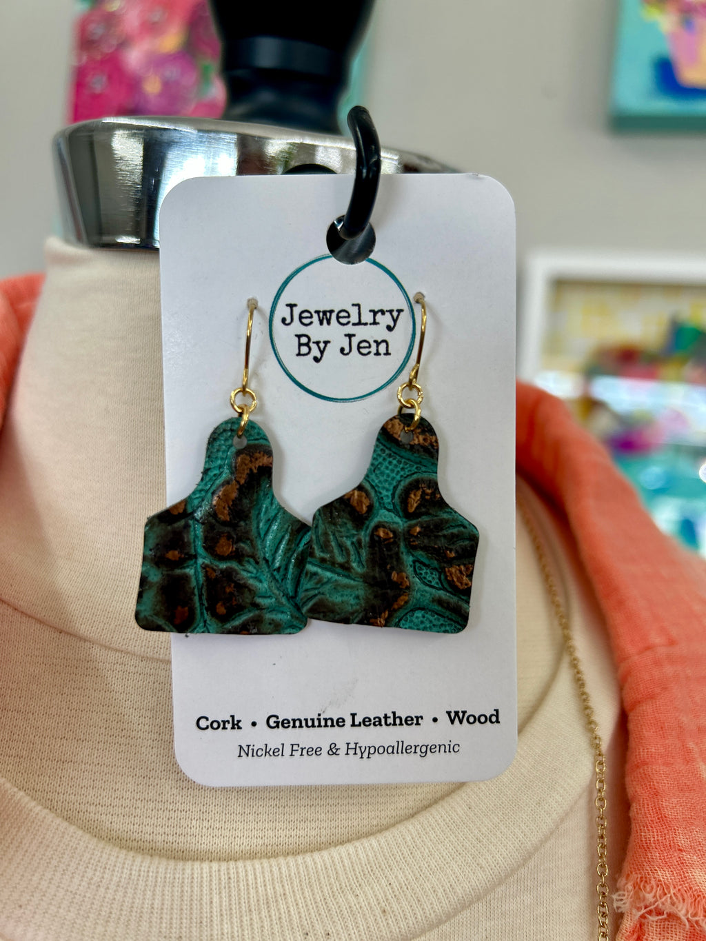 Earring | Animal Print Oblong Oval Post Genuine Leather Earrings