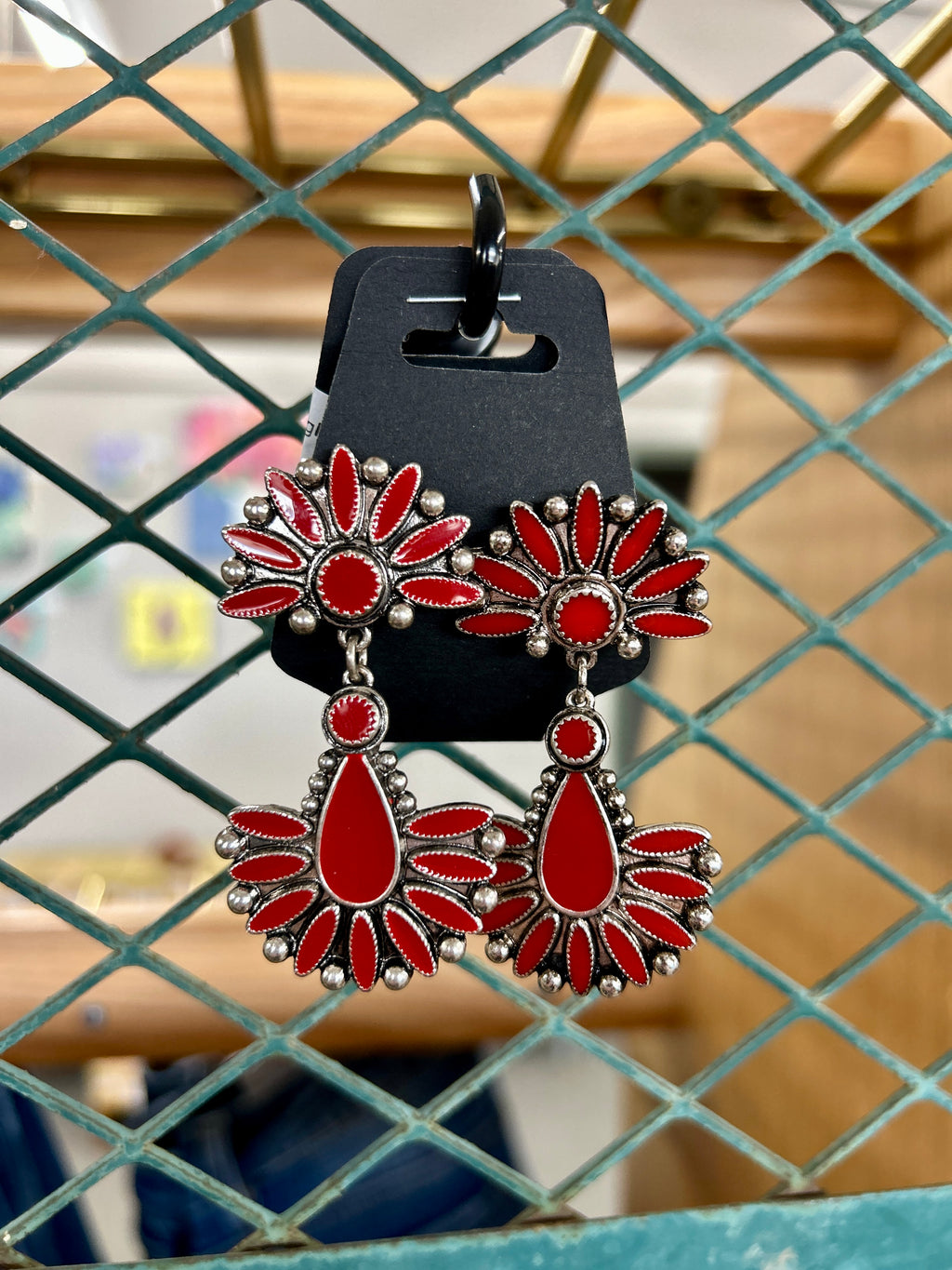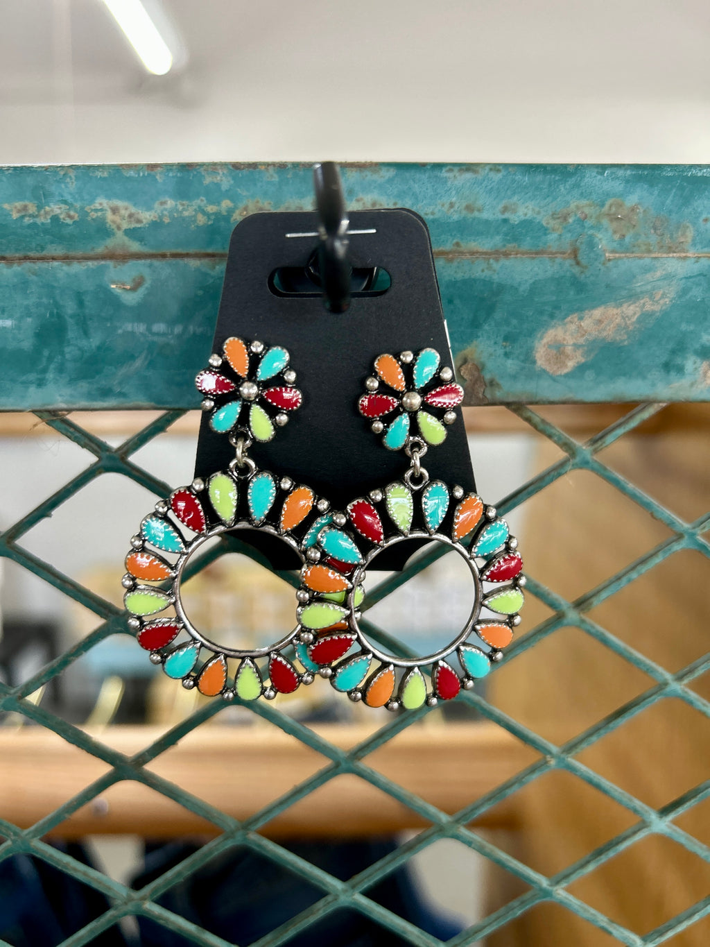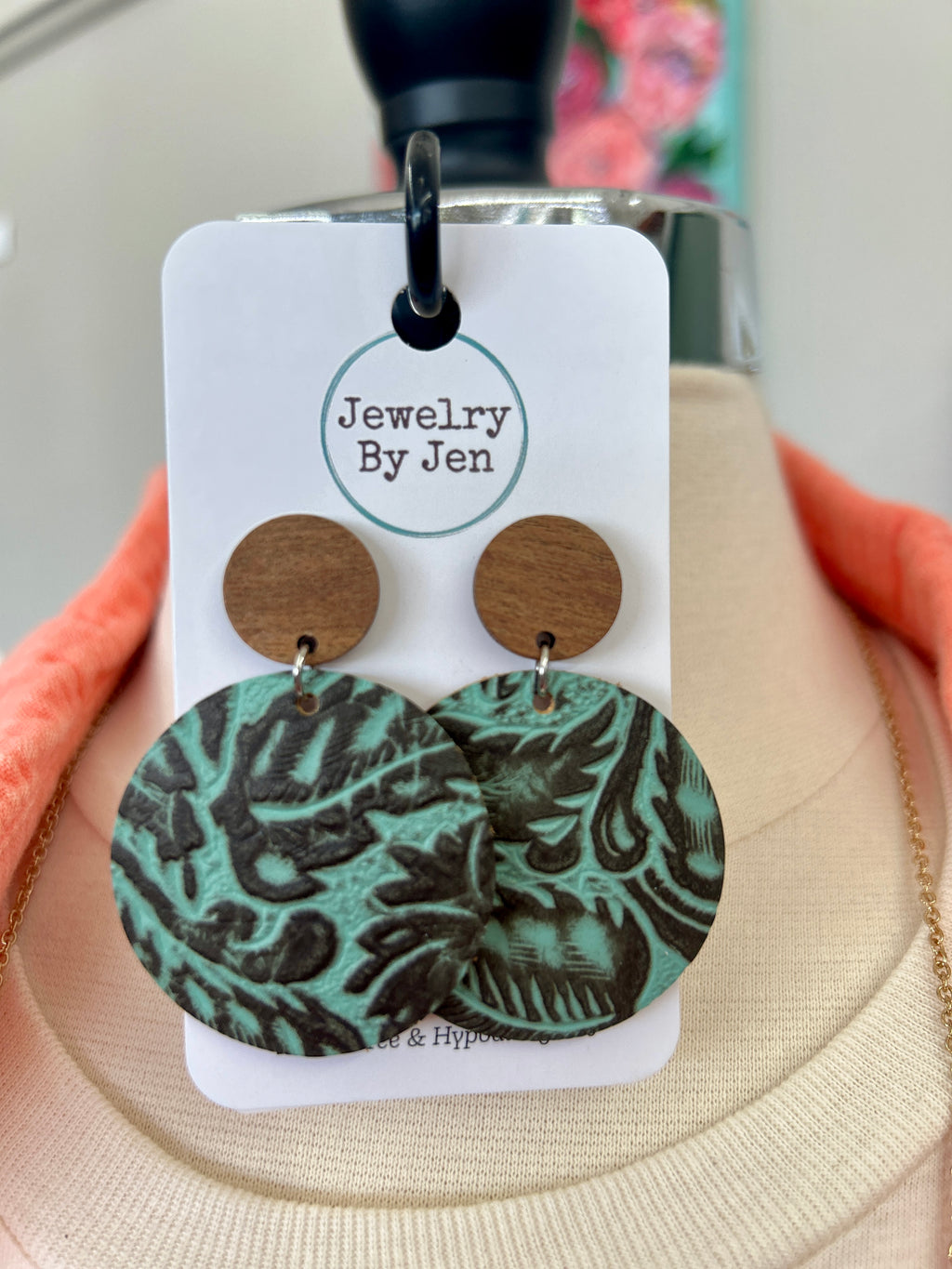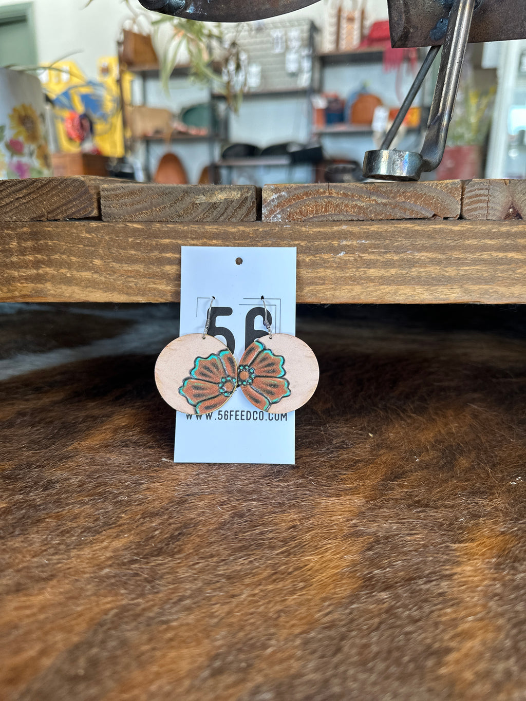 Earring | Leather Round Dangle with Turquoise Trim Flower