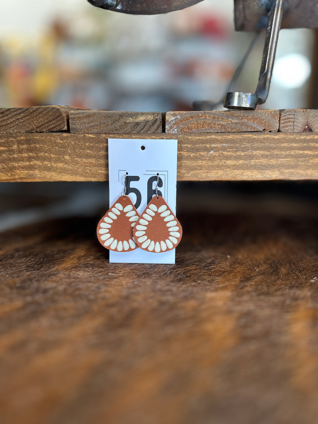 Earring | Leather Teardrop Dangles with Painted White Accents