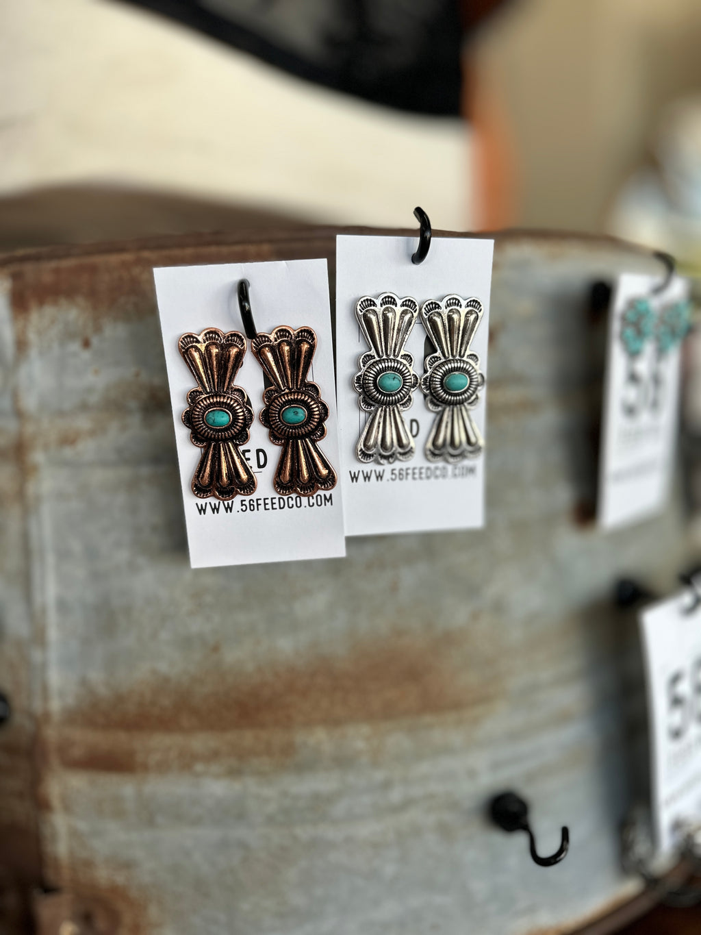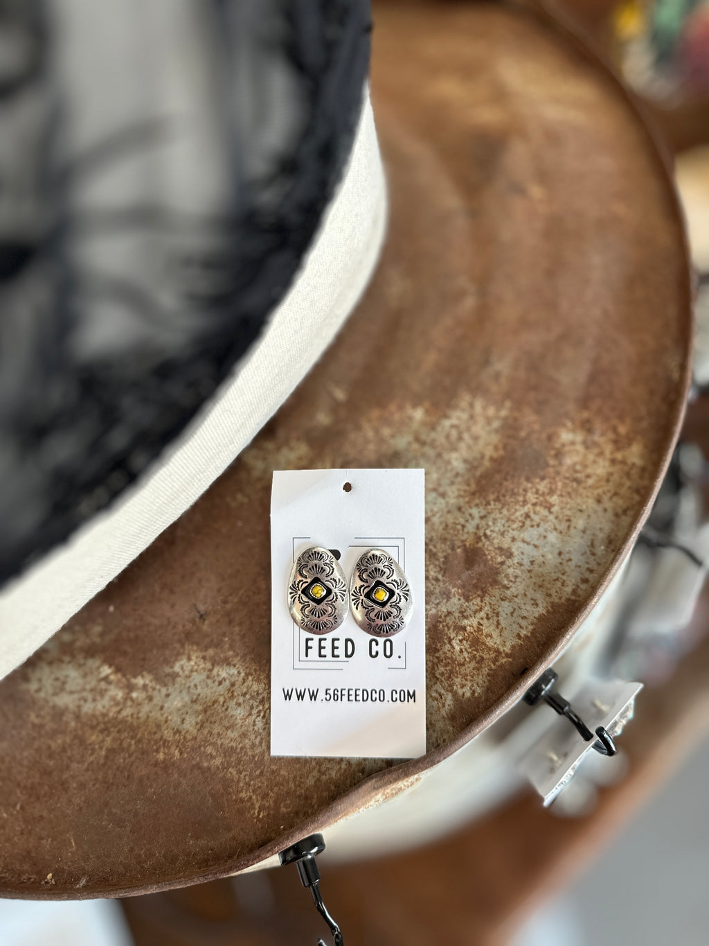 Earring | Silver Oval Concho Studs + Turquoise Stone