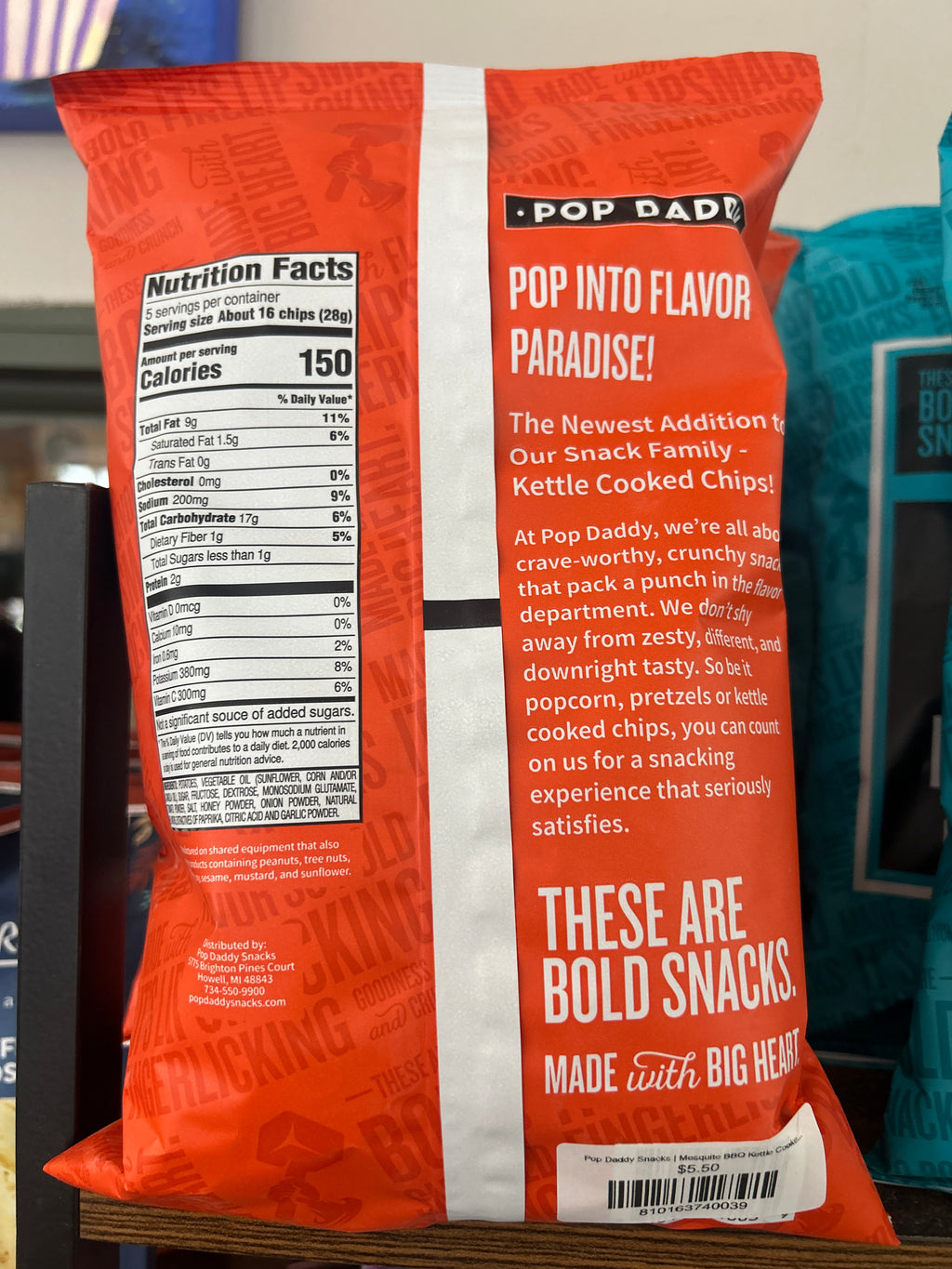 Pop Daddy Snacks | Mesquite BBQ Kettle Cooked Potato Chips 5.0 oz