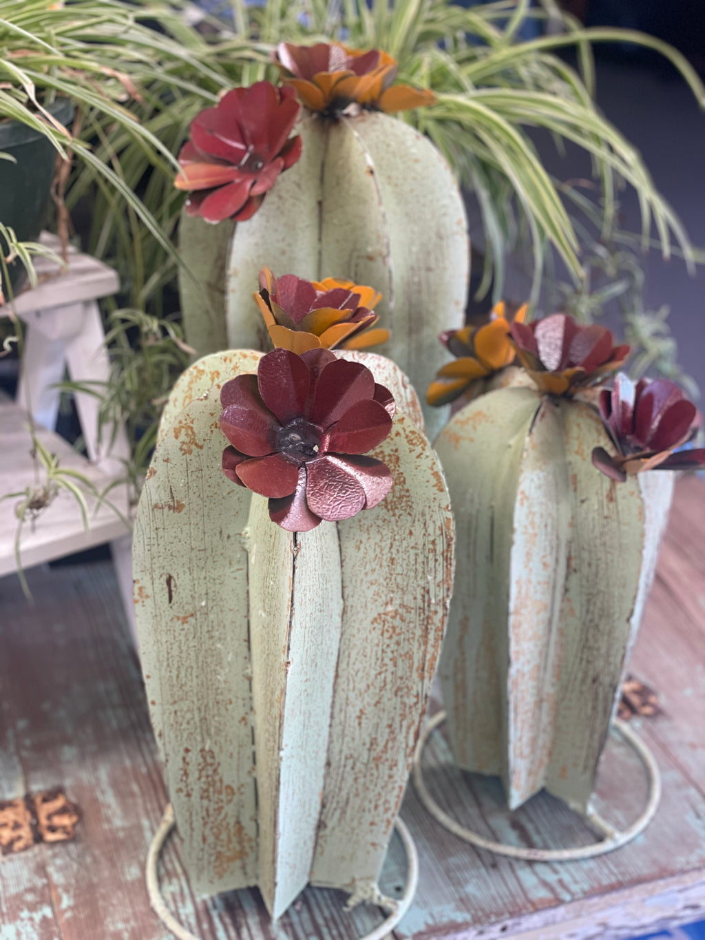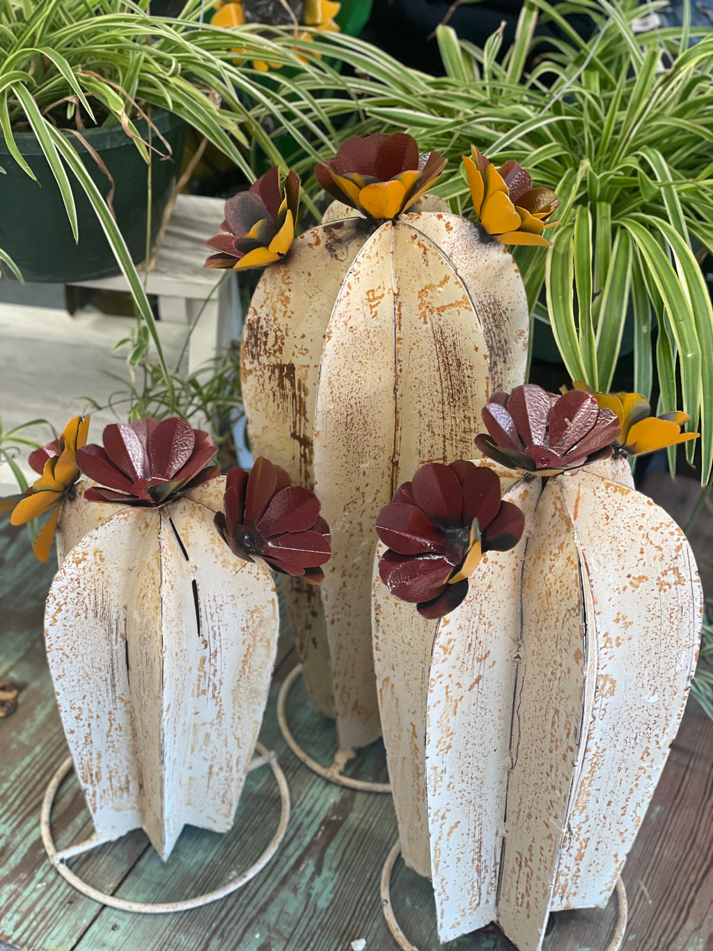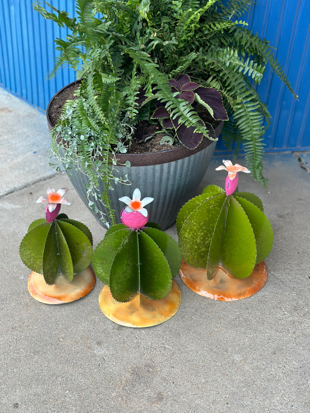 Pincushion Cactus with Single Flower Metal Art Yard Decor
