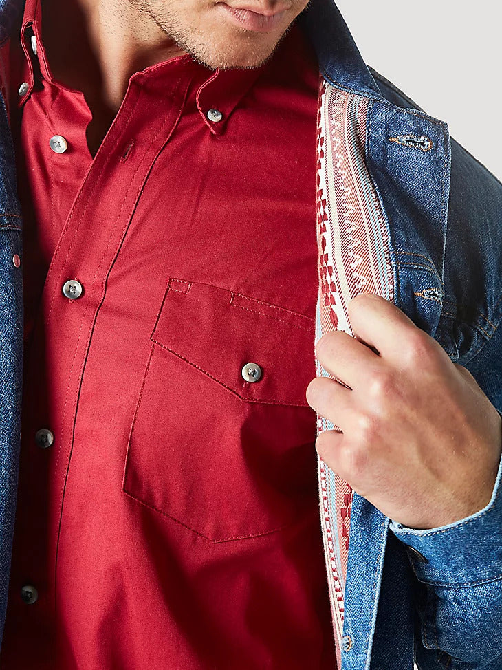 Wrangler® Men's Flannel Lined Western Denim Jacket in Fire Pit [112335727]
