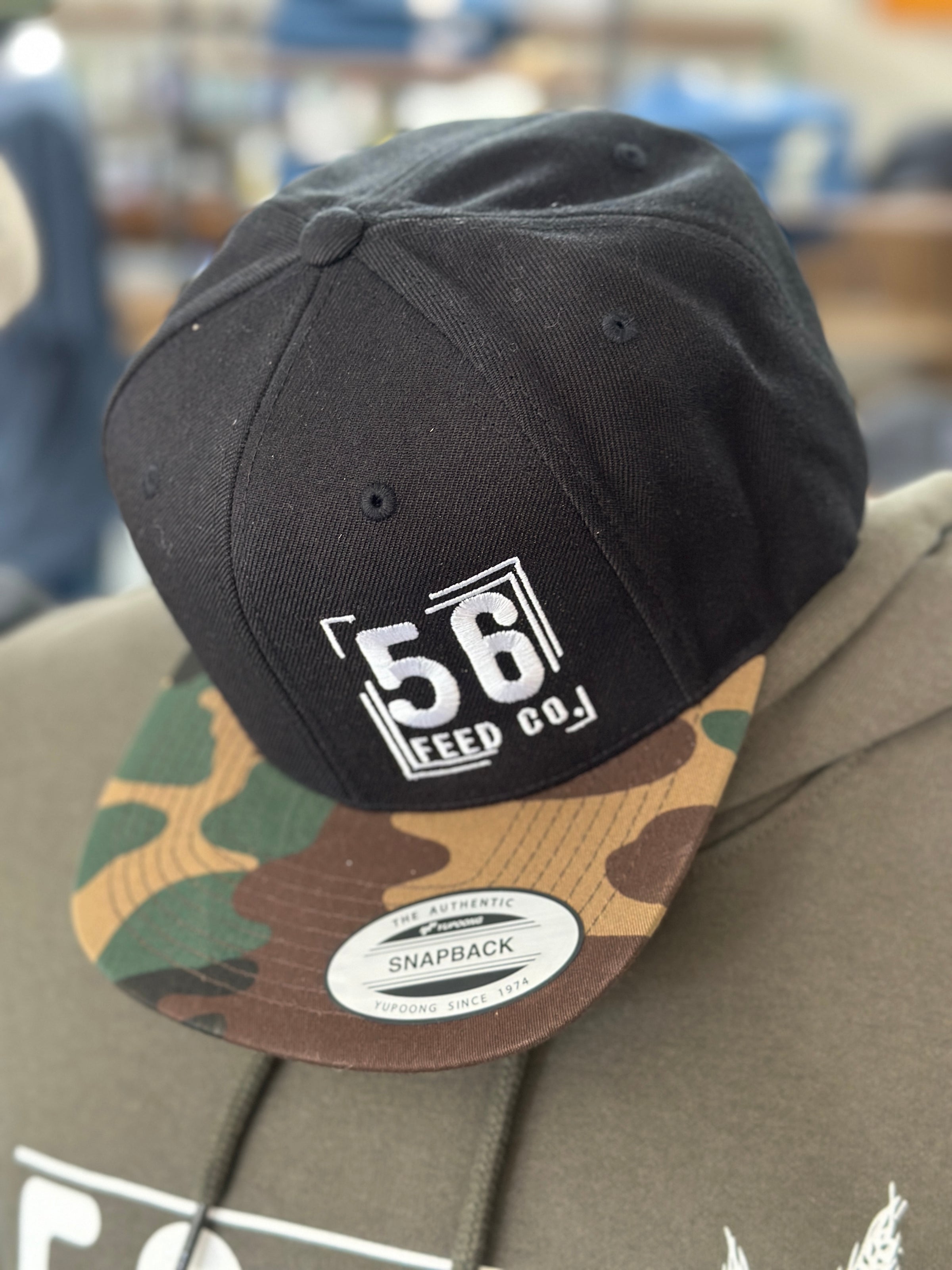 56 Feed Co | Black Camo with White Thread YP Classics Adjustable Snapback Premium Flat Bill