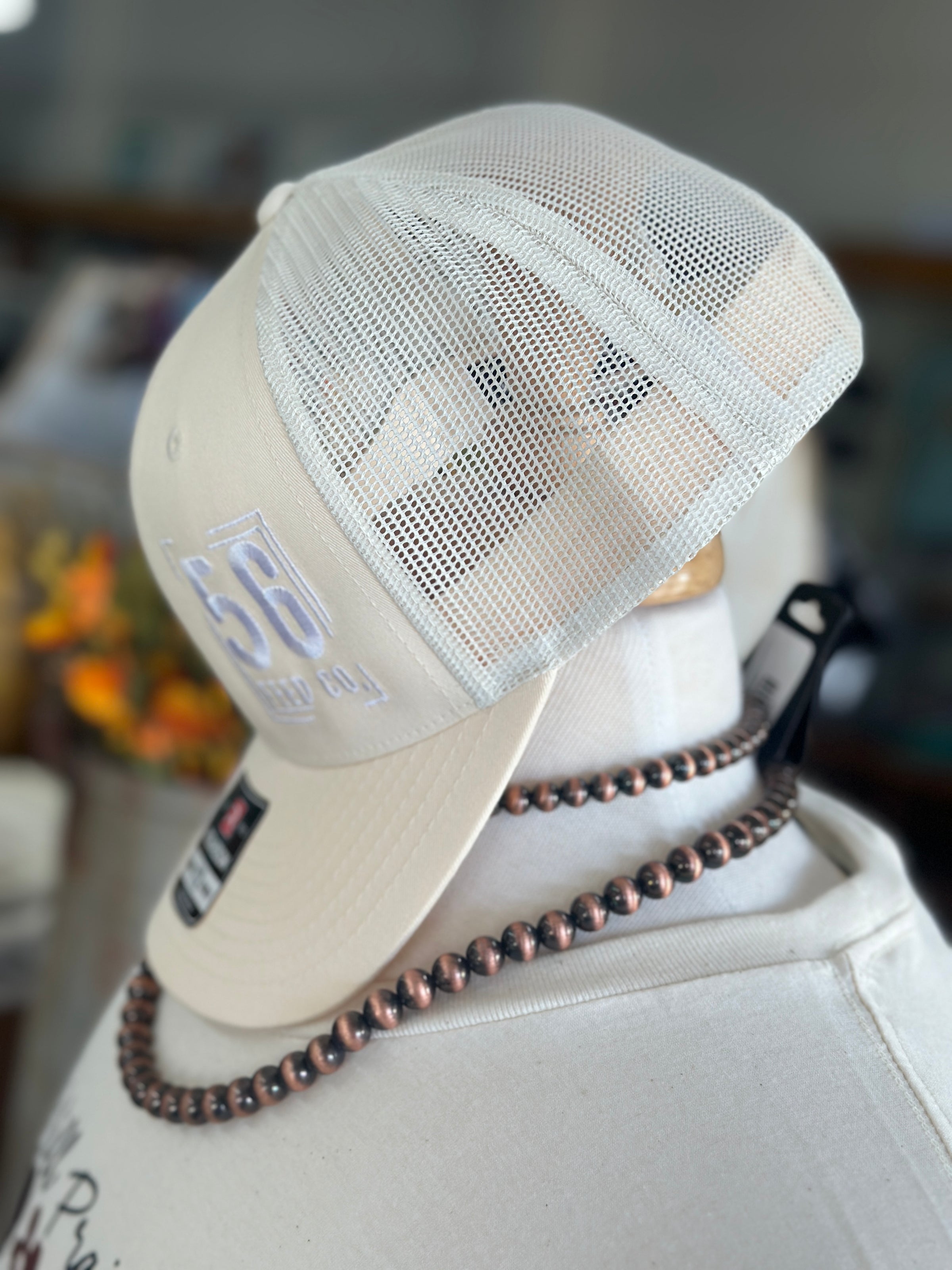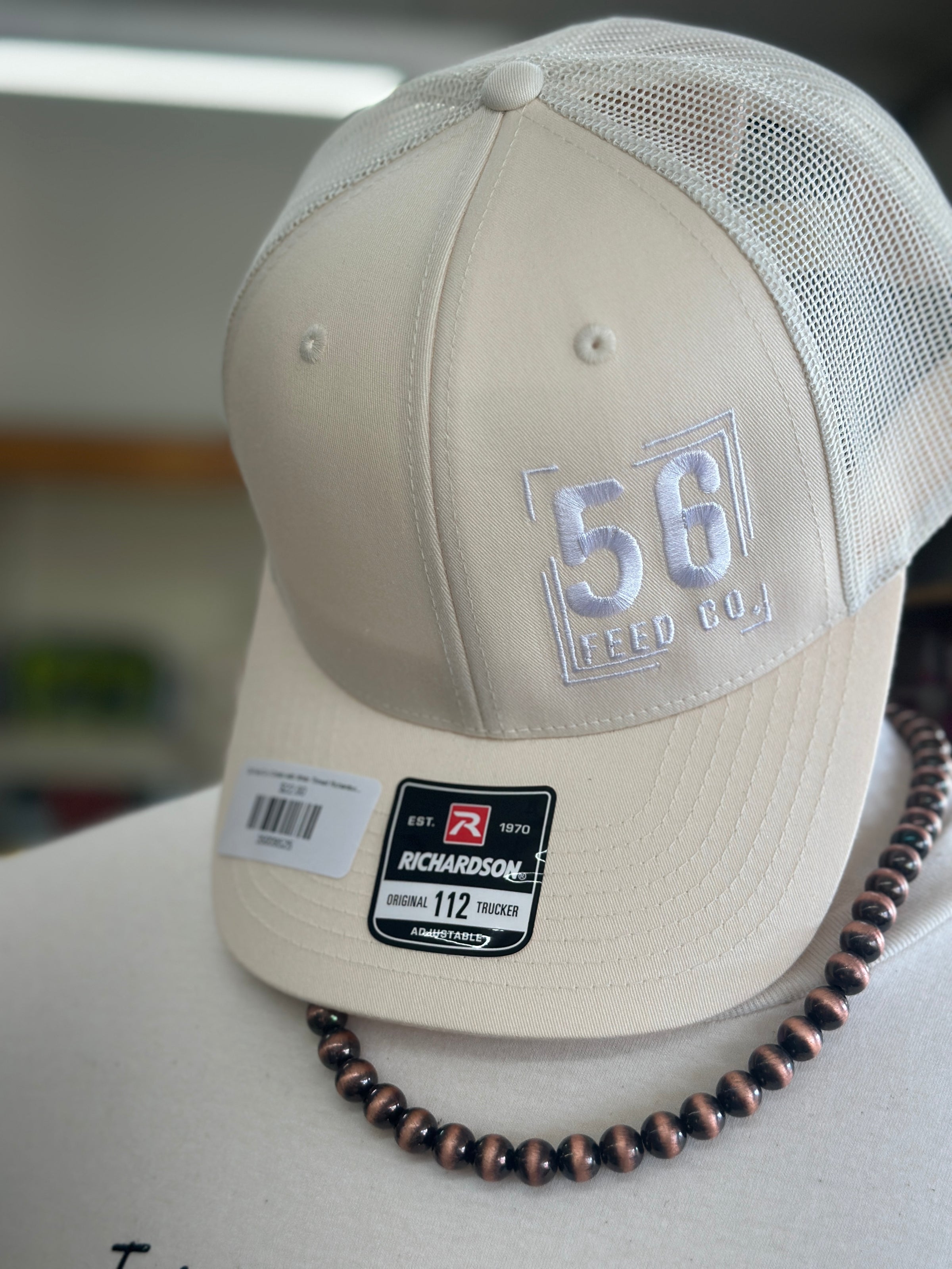56 Feed Co | Cream with White Thread Richardson 112 Adjustable Snapback Trucker Cap