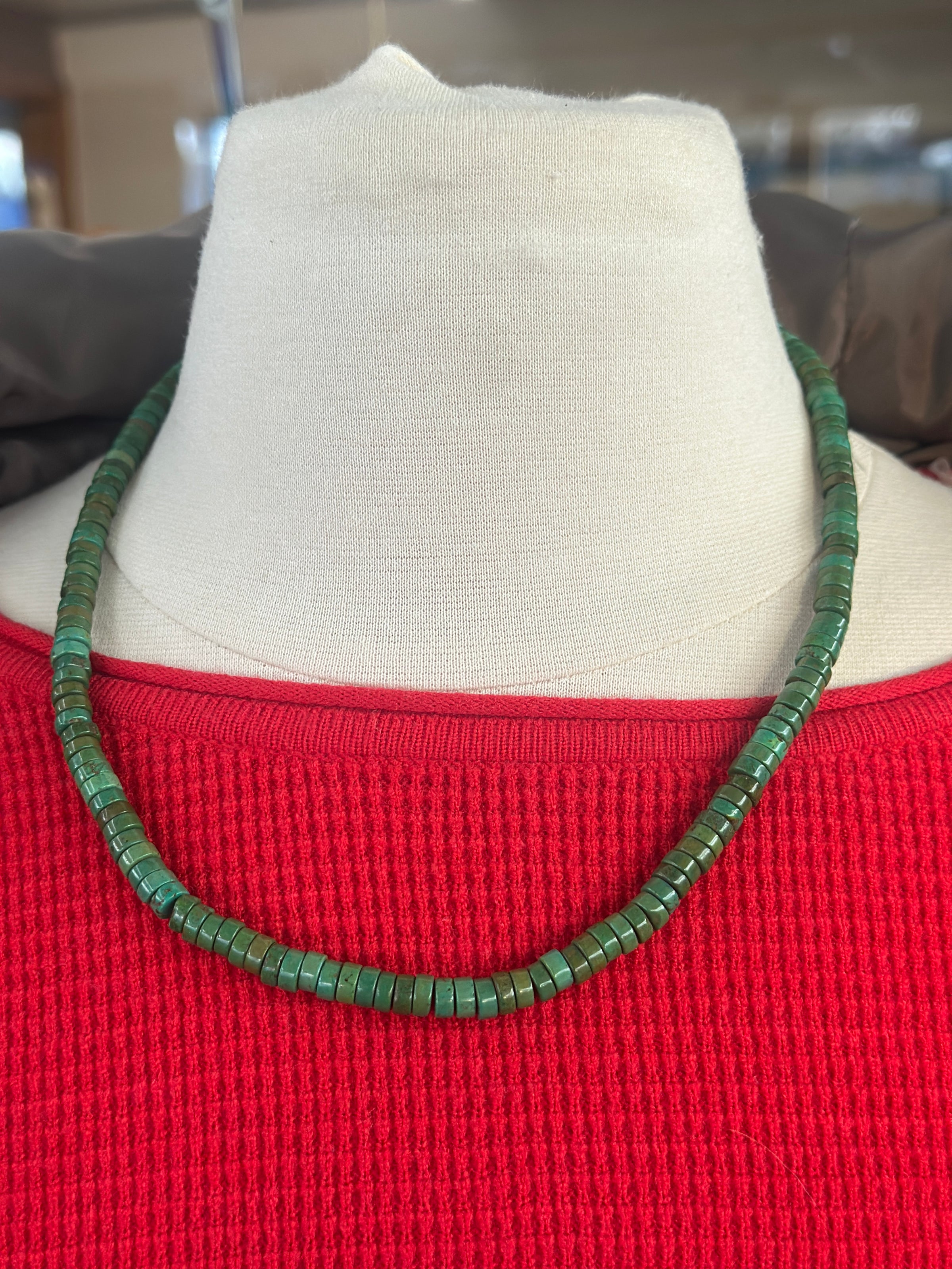 16 inch Dark Green Heishi Flat Disc Bead Necklace