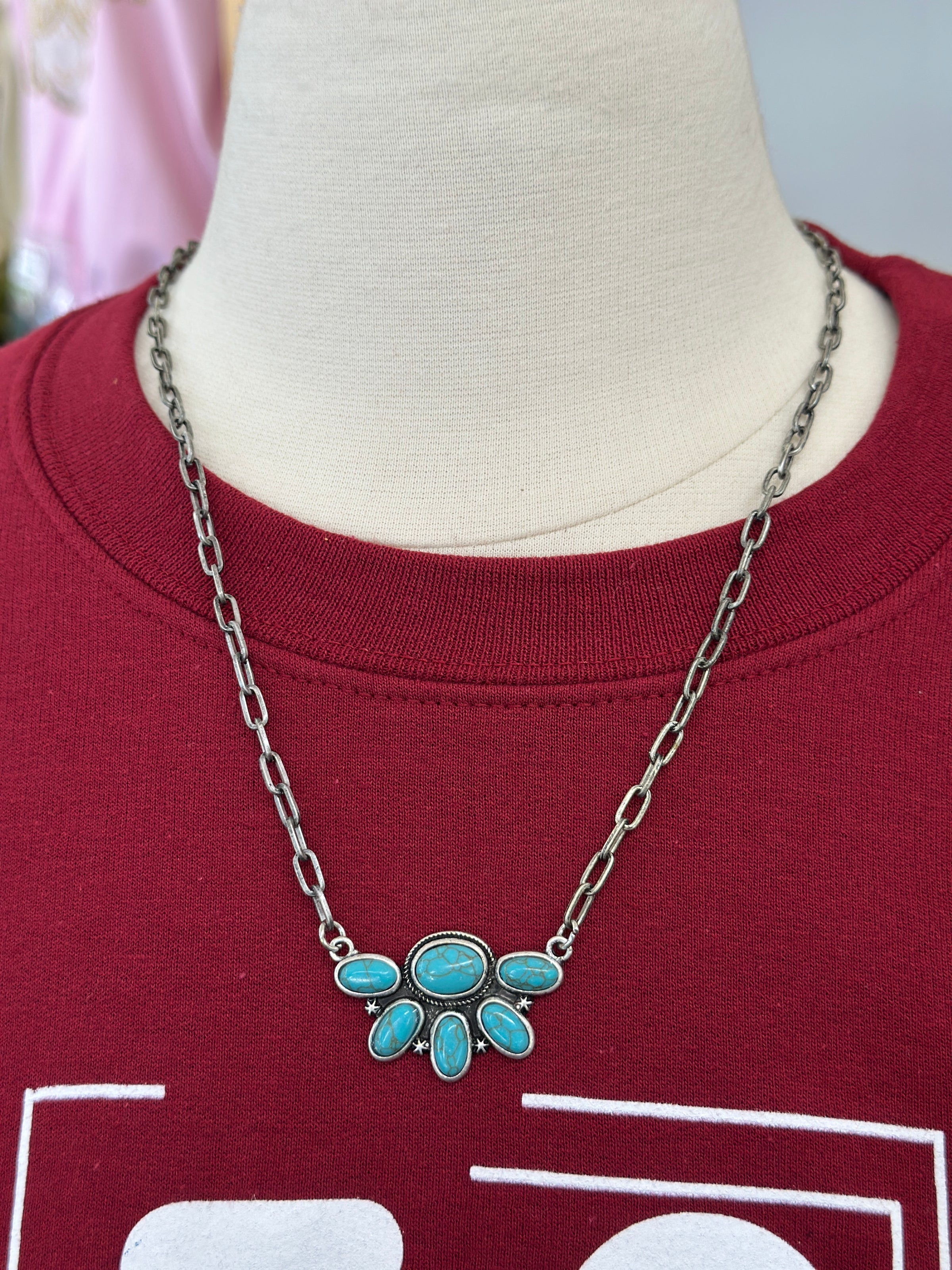 Necklace | 24 Inch Half Cluster Stone Pendent with Metal Clip Paper Chain Necklace