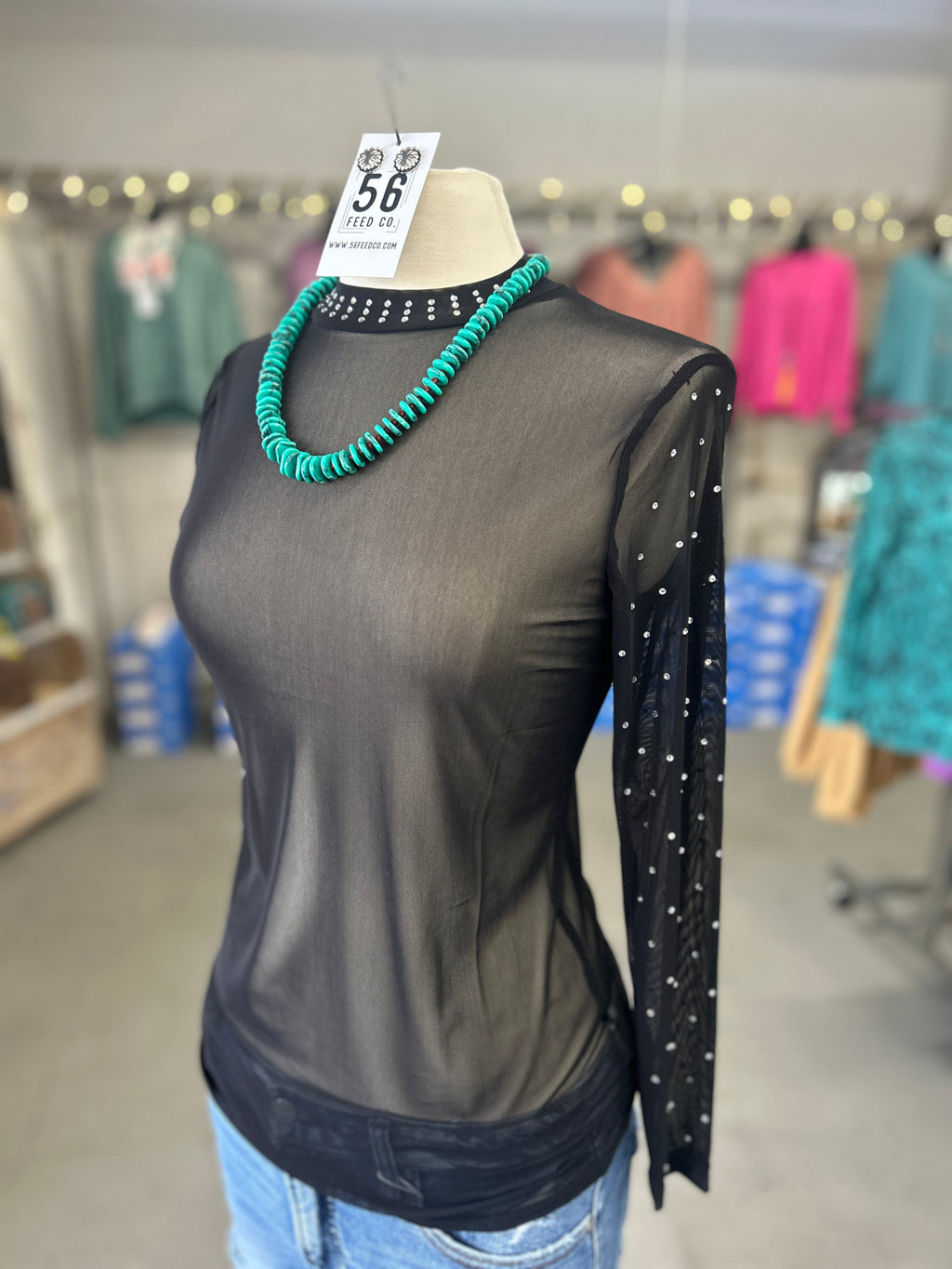 Merigold Kiss | Burnt Orange Southern Soul Velvet Mesh Longsleeve Lace Top