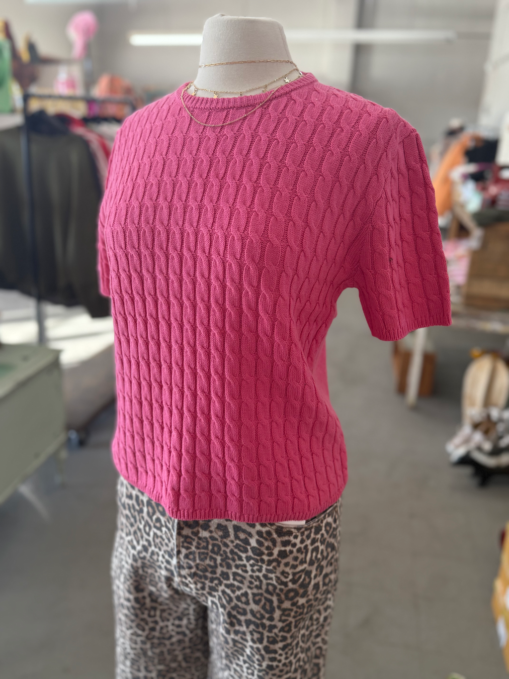 Women's Taffy Pink Cable Knit Short Sleeve Sweater Top