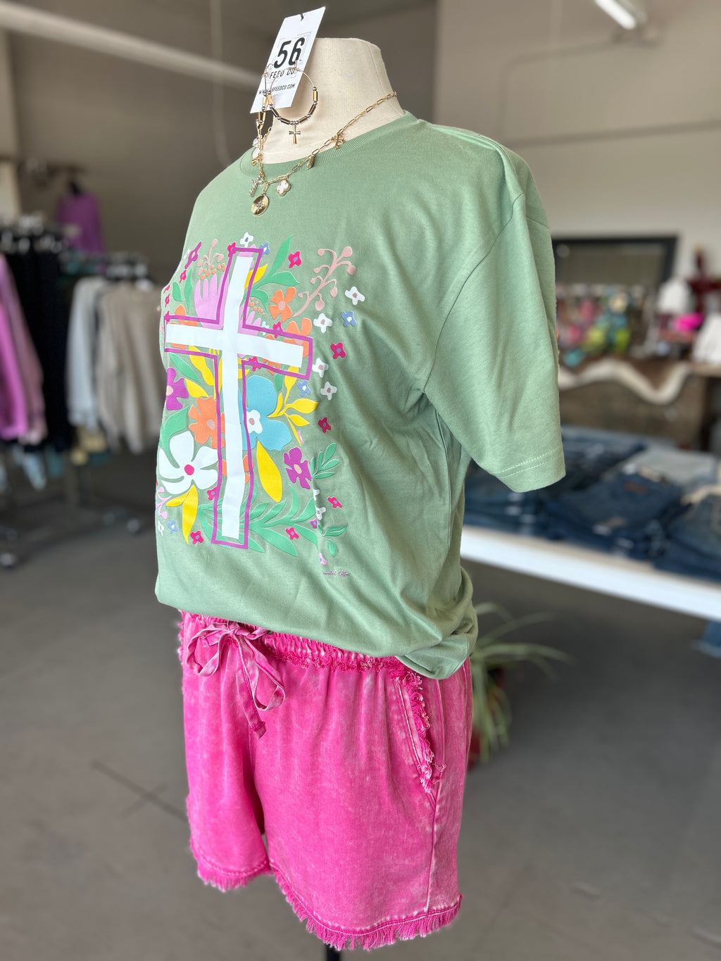 Branded Cotton | Sage Floral Cross Crew Neck Tee
