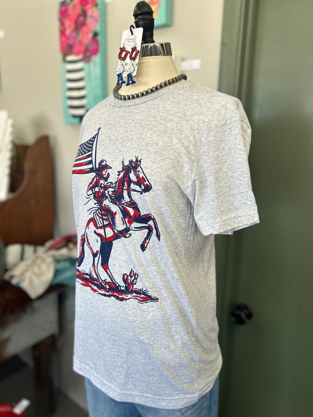 Texas True Threads | Patriotic Cowboy White Fleck Crew Neck Tee