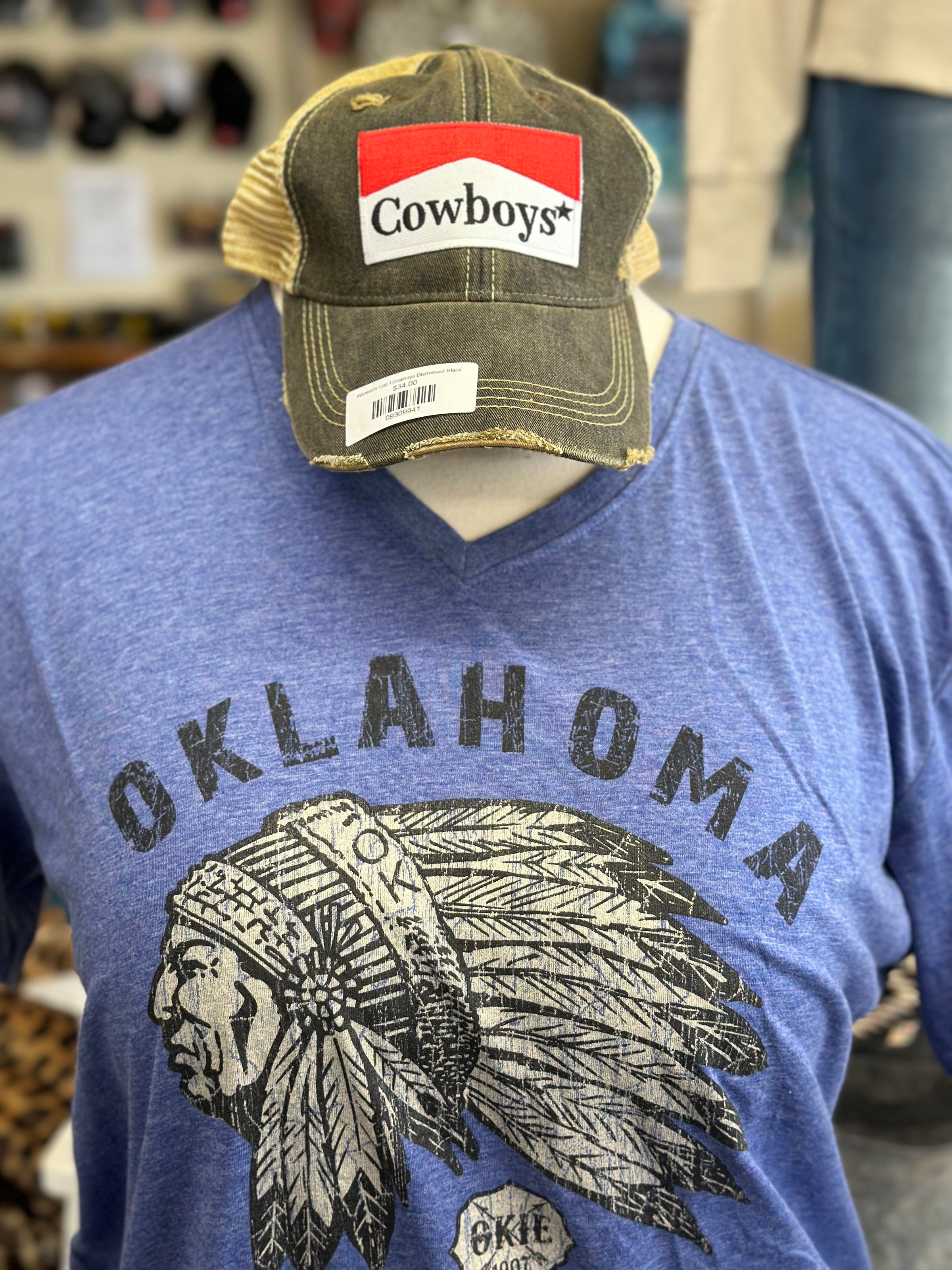 Oklahoma Indian Head Chief Tee l Heather Navy V-Neck Tee