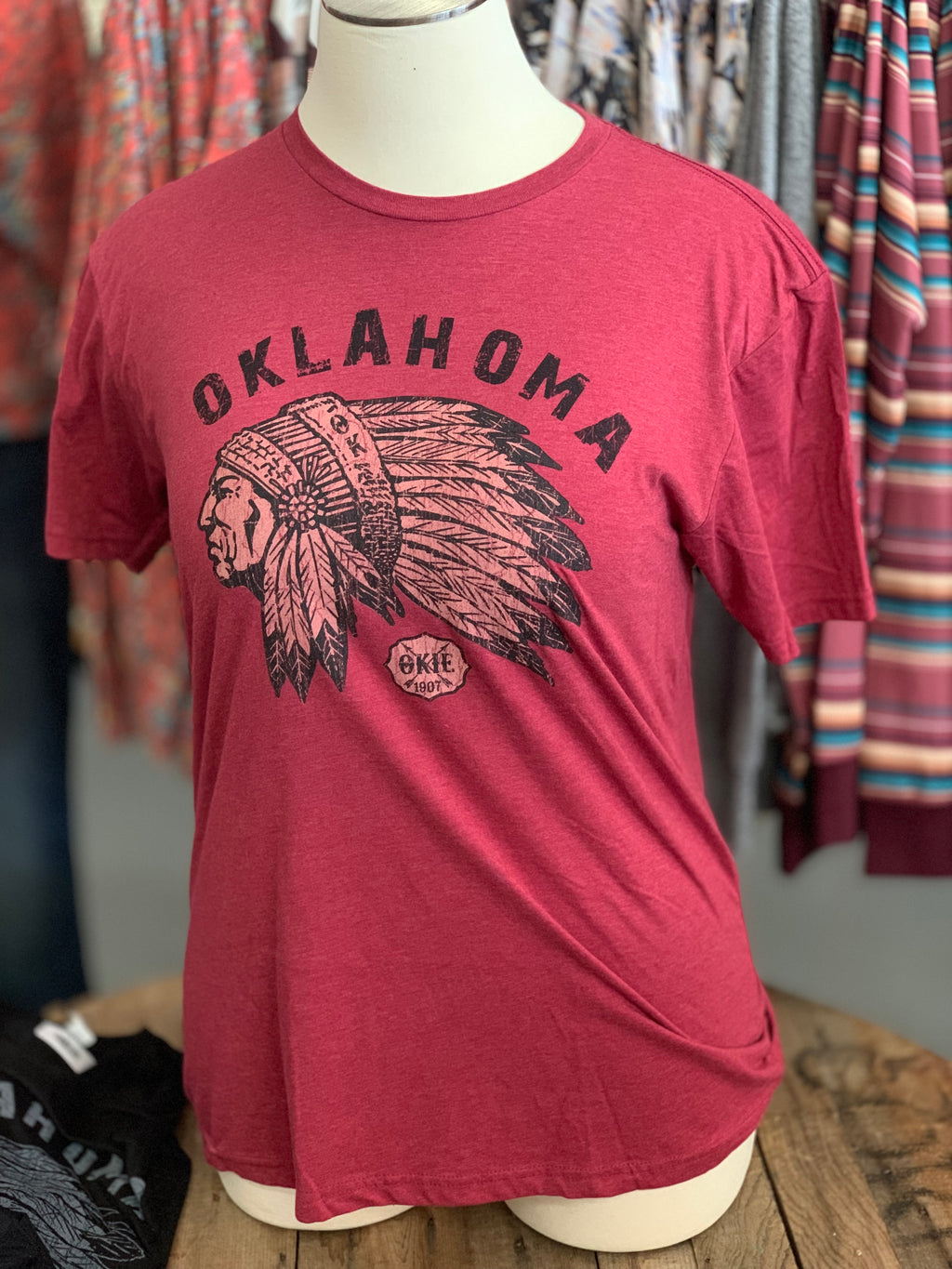 Oklahoma Indian Head Chief Tee l Cardinal Crew Neck