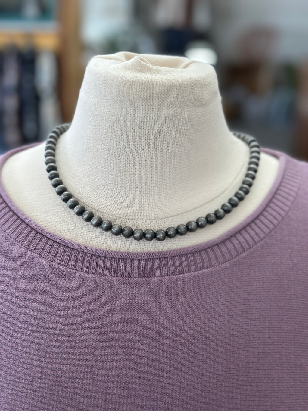 Necklace | 17 Inches Silver Navajo Pearl Bead Necklace [8mm]