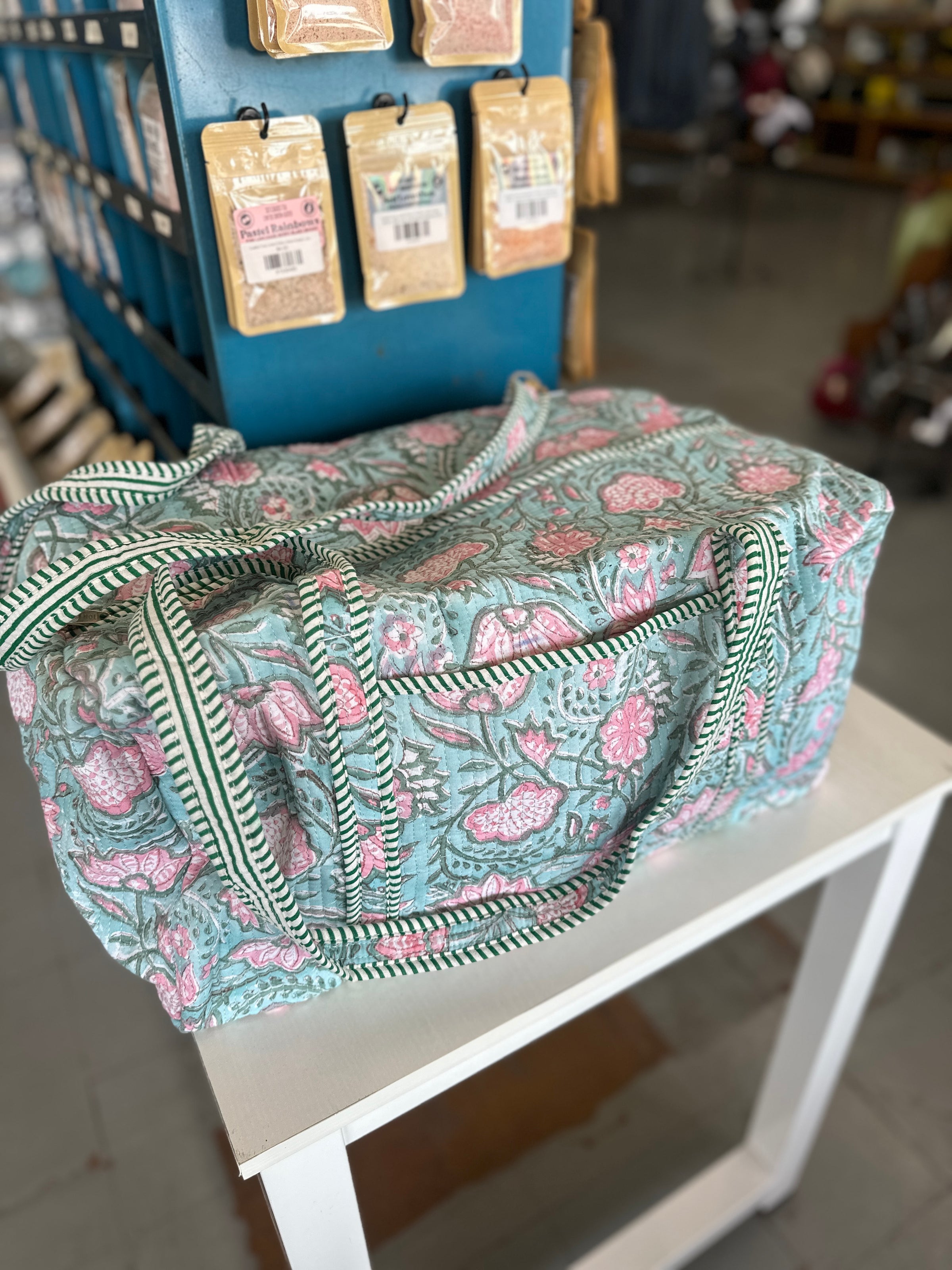 Lennon Blue Floral Duffle Bag