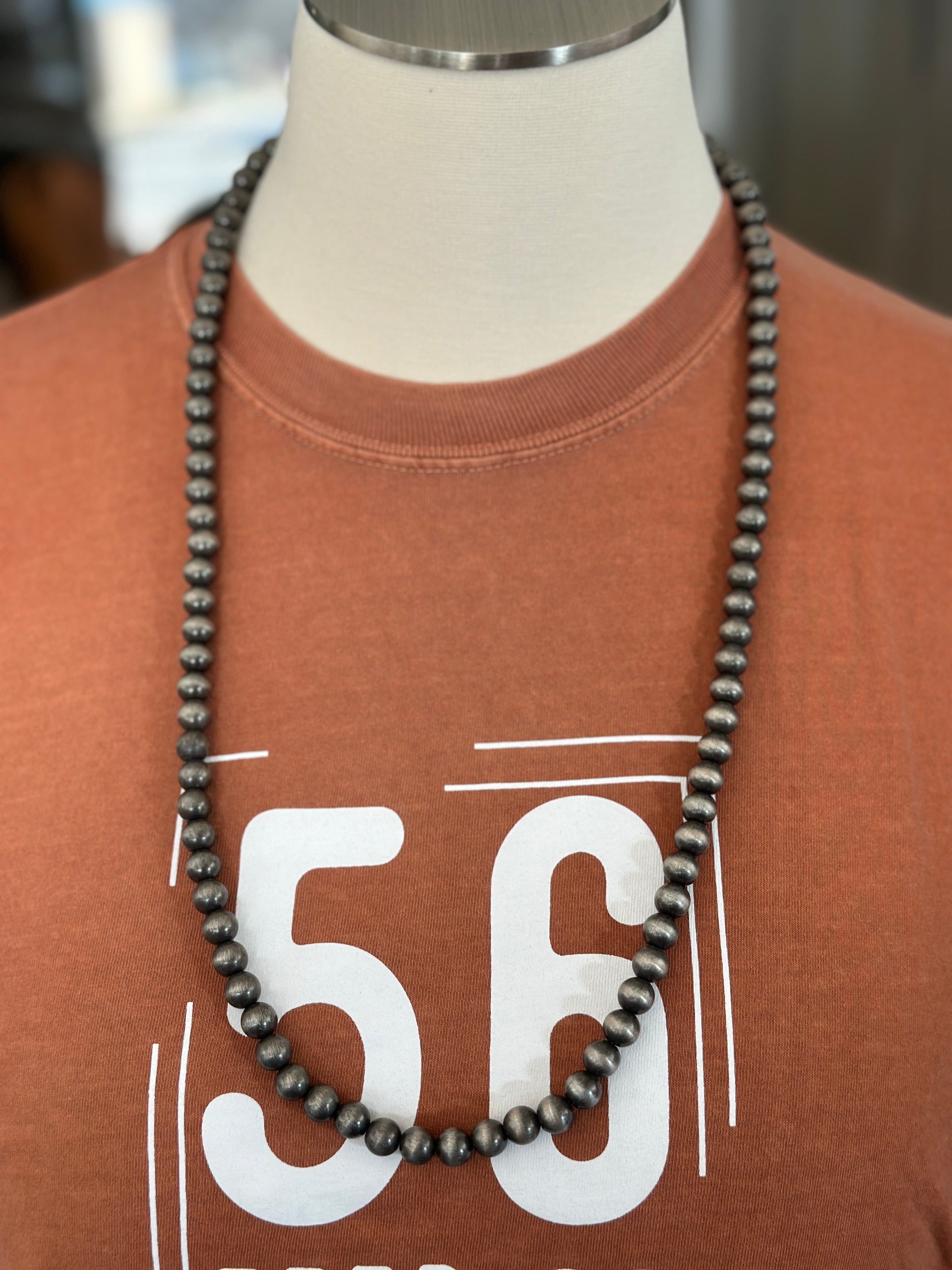 32 Inches Silver Navajo Pearl Bead Necklace [10mm]