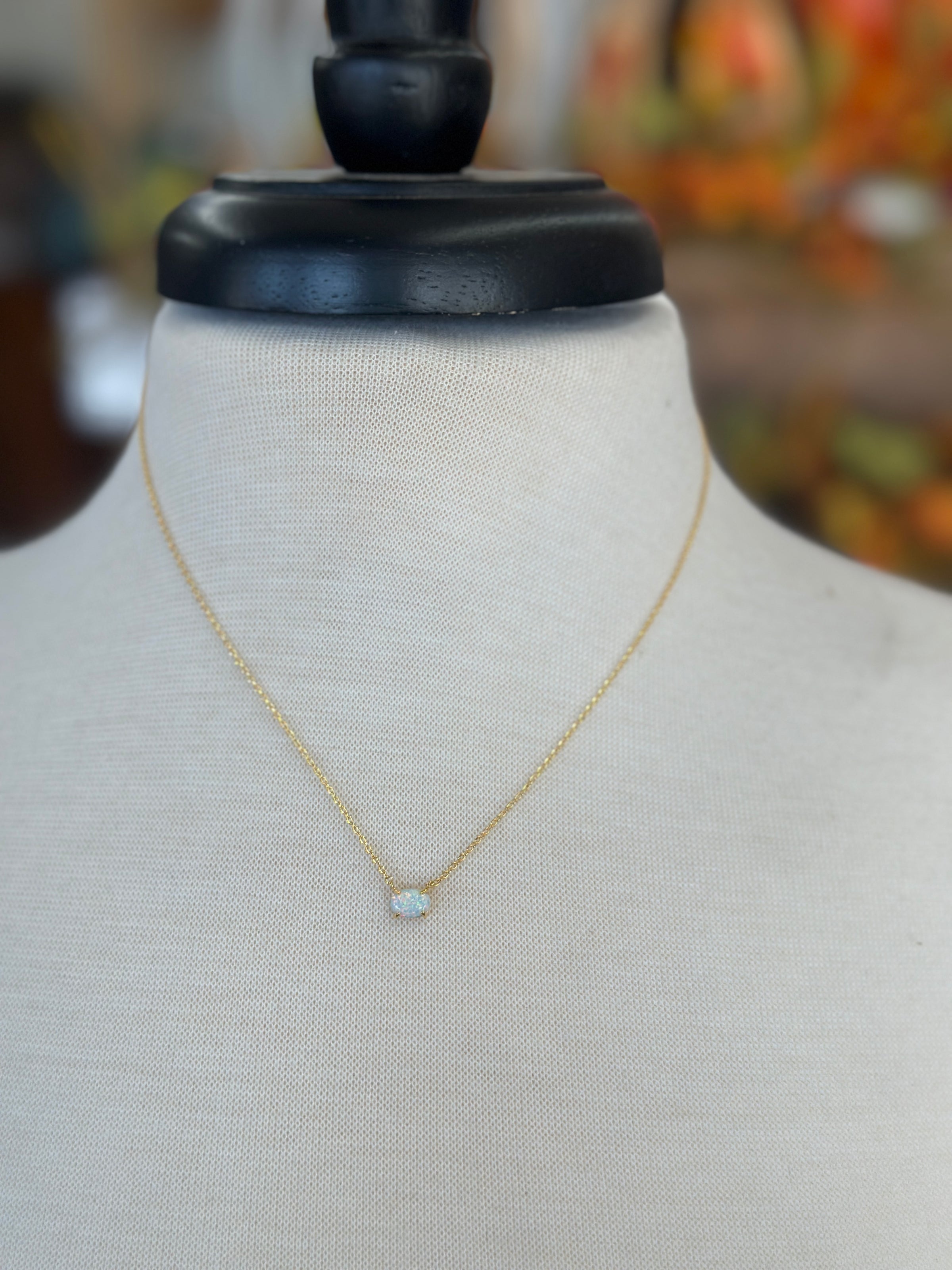 Necklace | Gold Dipped Oval Opal Pendant Necklace