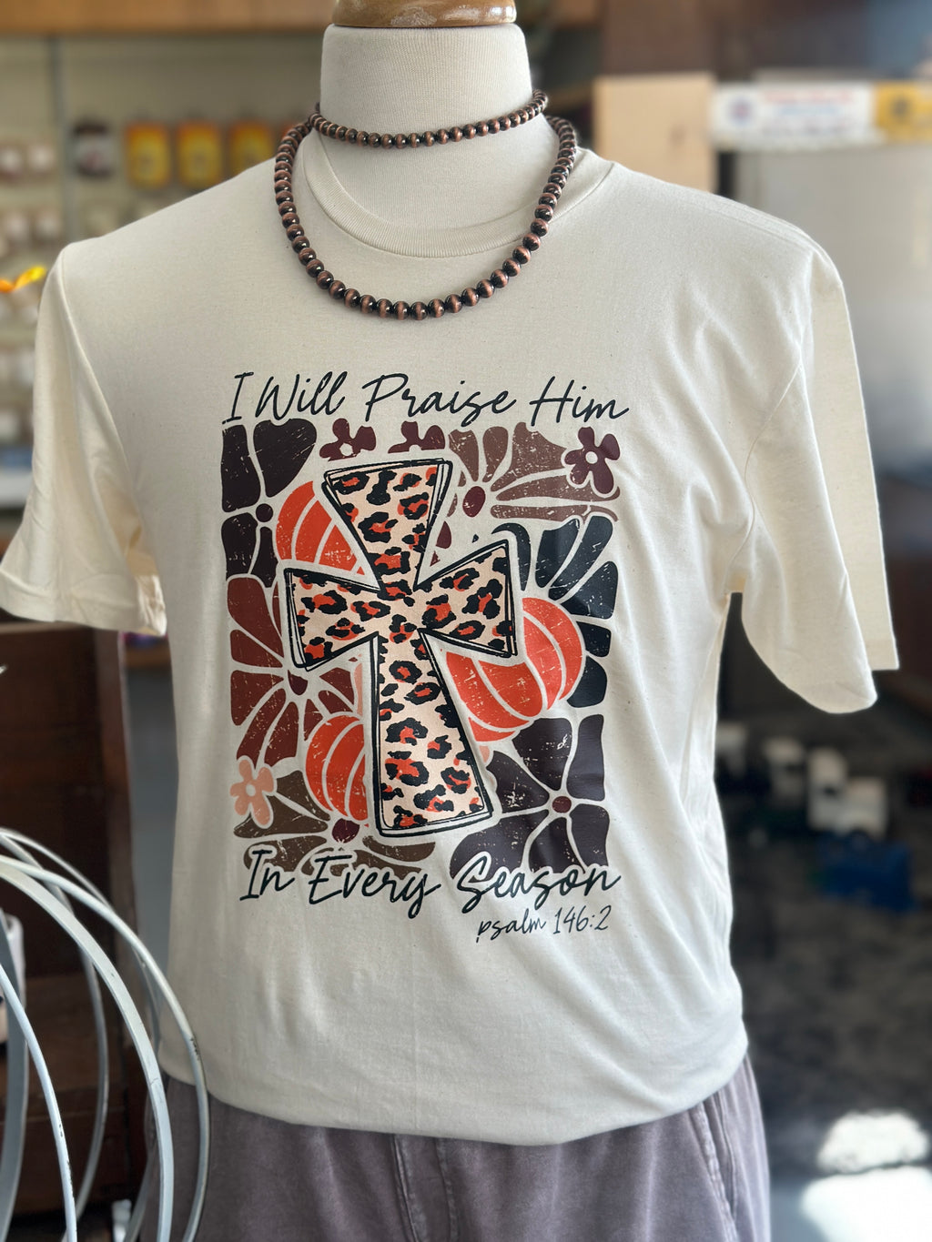 Women's Off-White 'I Will Praise Him in Every Season' Crew Neck Tee