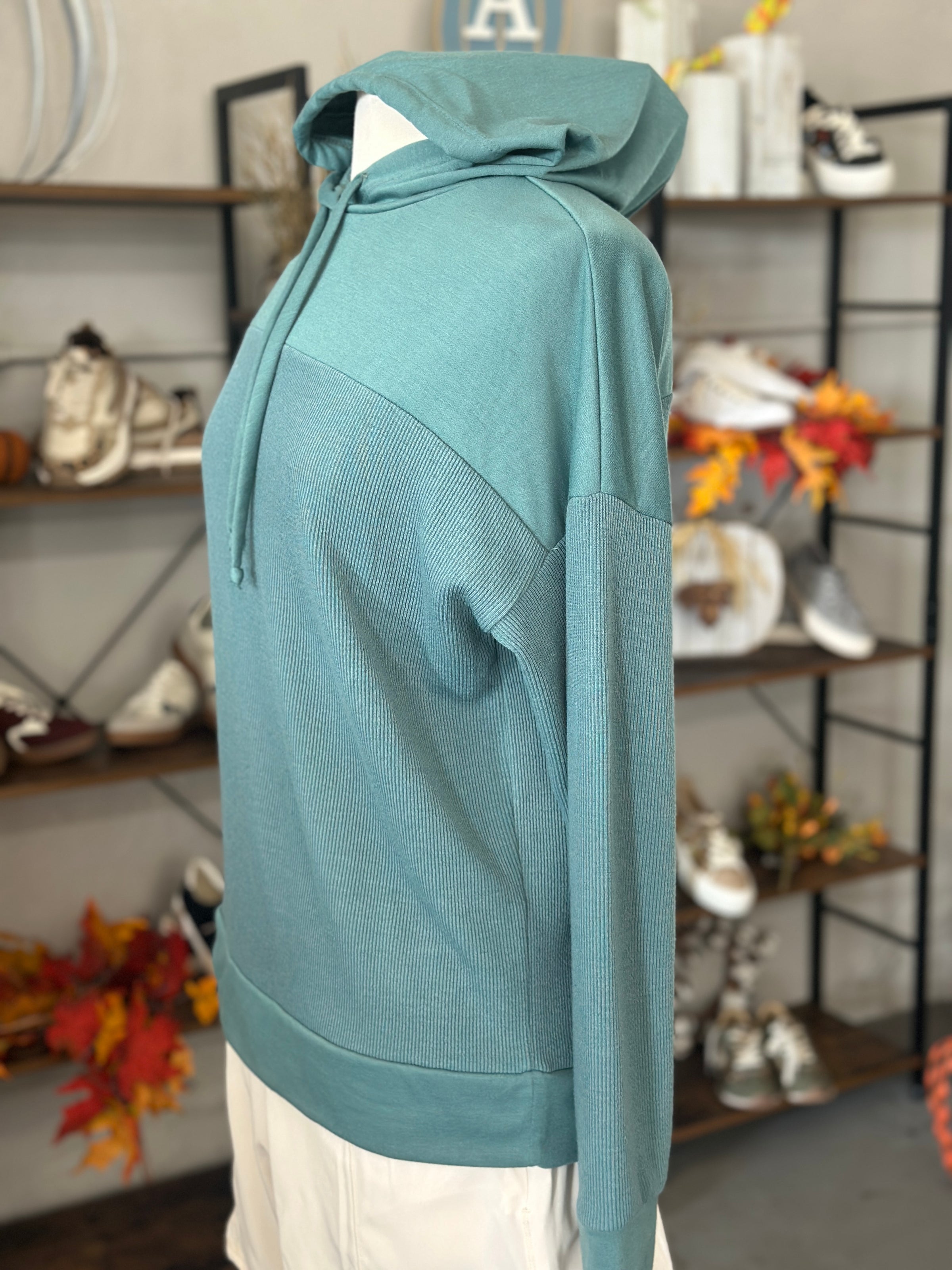 Dusty Teal Drawstring Neck Longsleeve Hood Sweatshirt