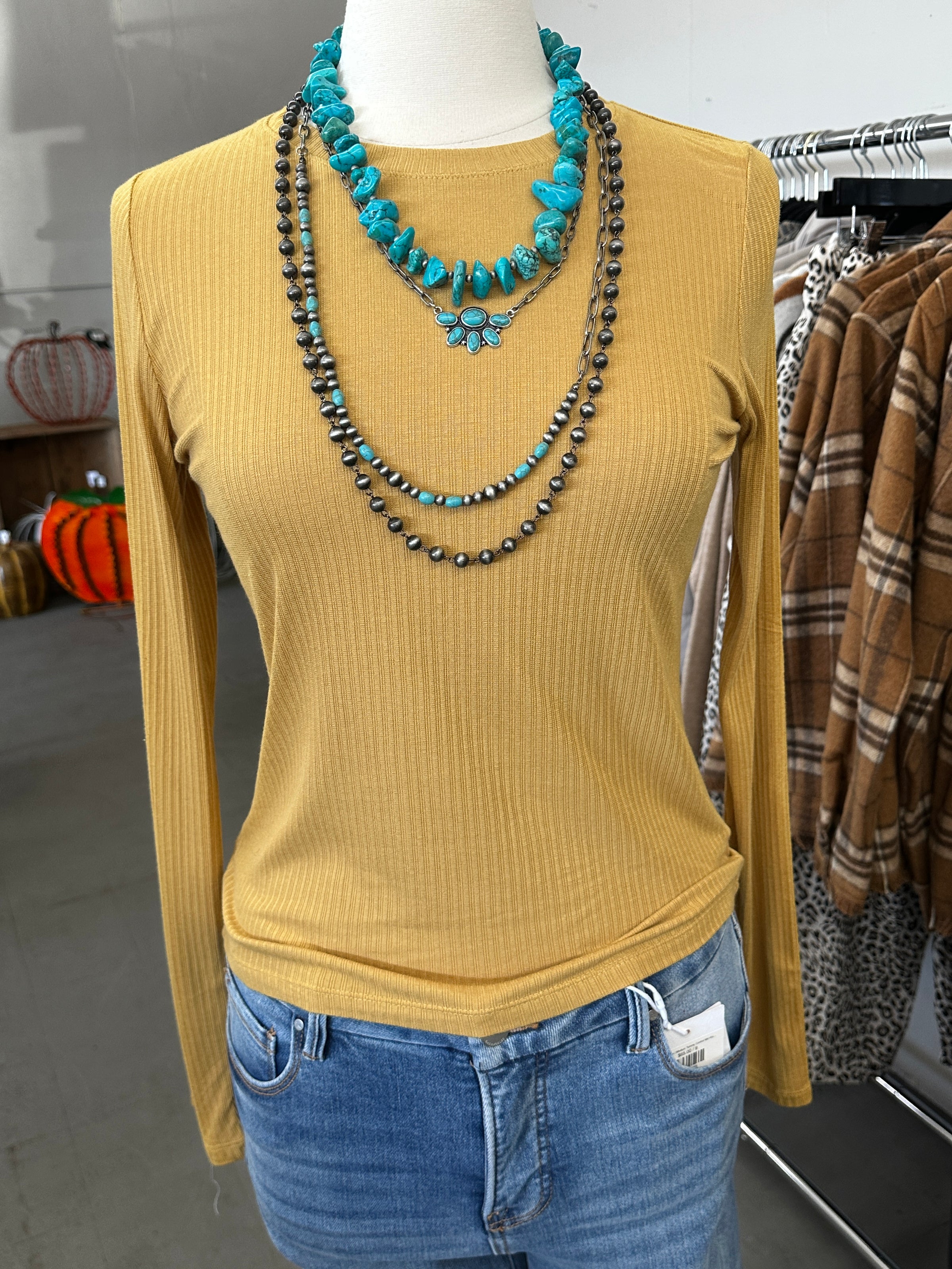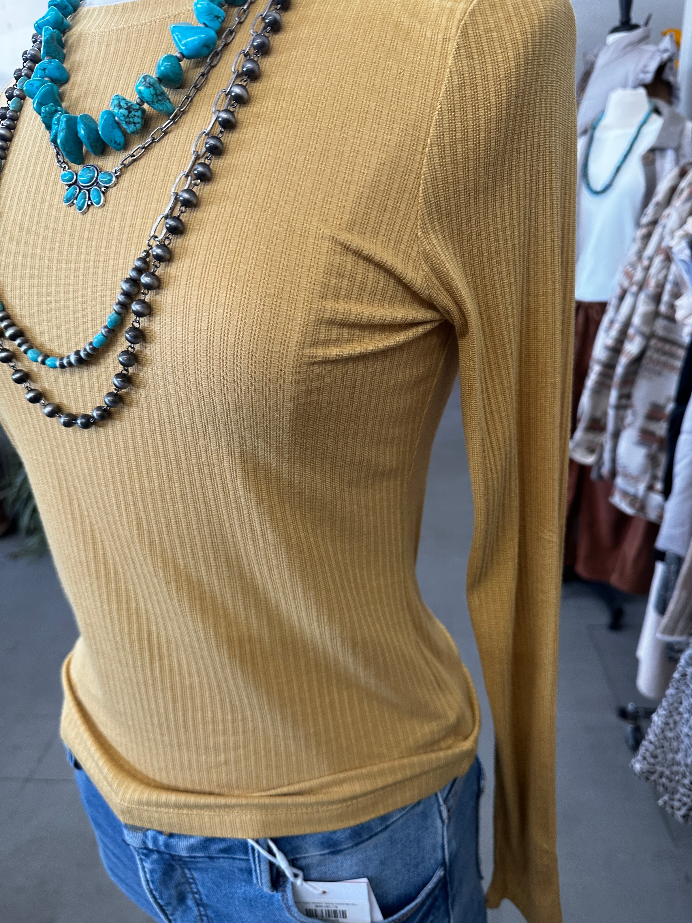 Women's Honey Mustard Basic Ribbed Knit Top