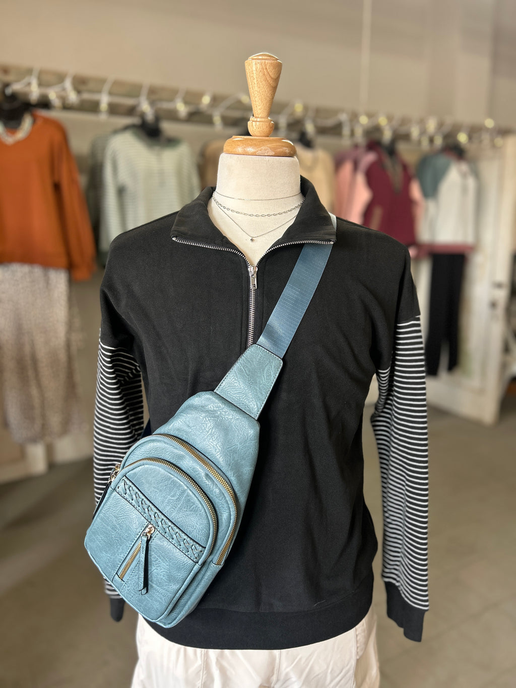Staccato l Half Zip Black Stripe Sleeve Sweatshirt