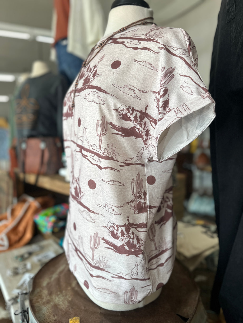 Women's Western Desert Sand Cuffed Short Sleeve Knit Top