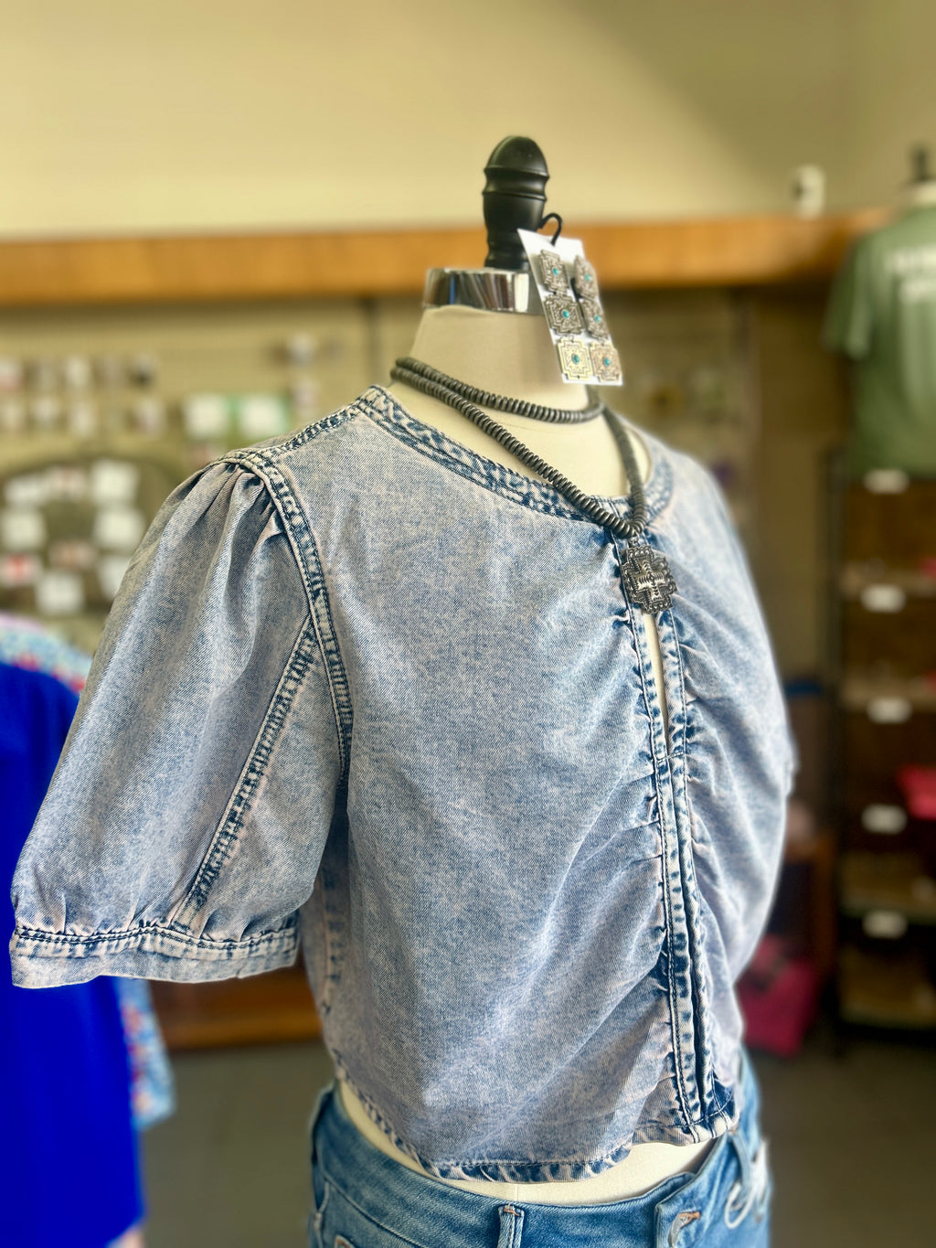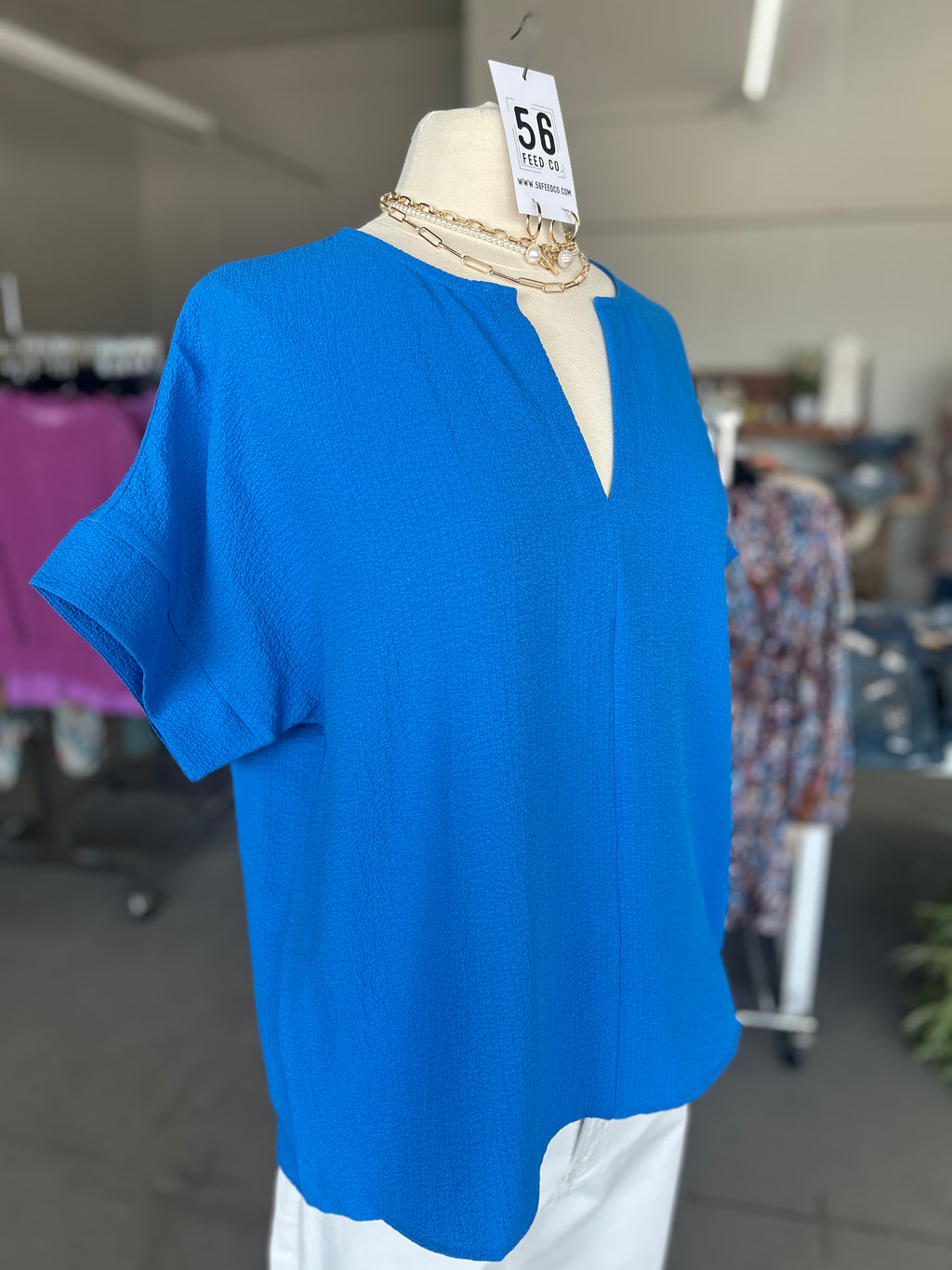 Women's Ocean Blue Bubble Airflow Split Neck Top