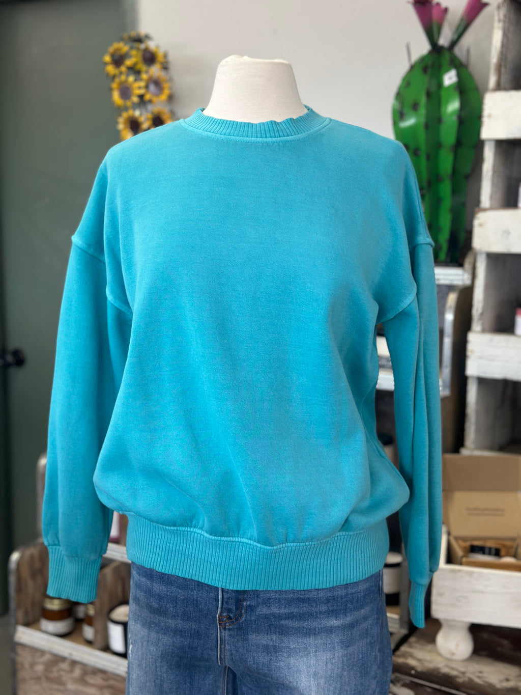 Women's Turquoise Pigment Dyed Fleece Oversized Pullover Sweatshirt