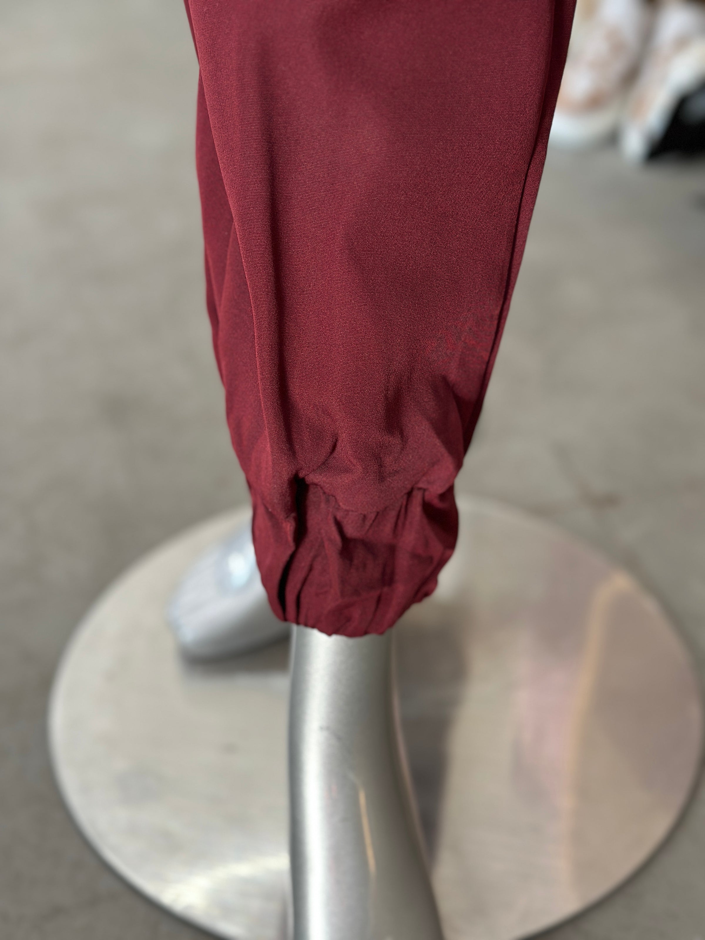 Women's Burgundy Drawstring Joggers with Ruched Ankle Cuffs