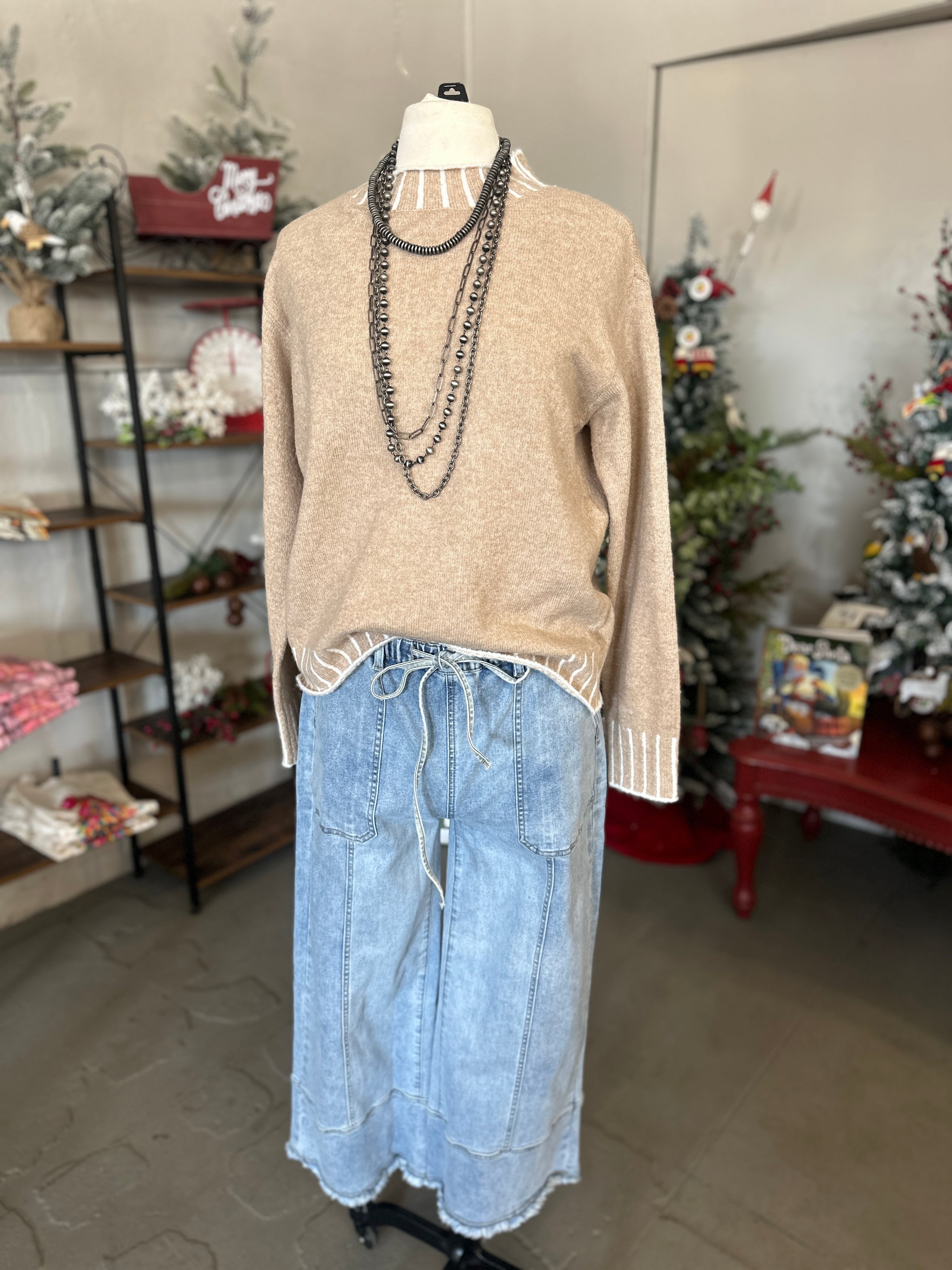 Staccato | Taupe Texture Accent Longsleeve Pullover Sweater
