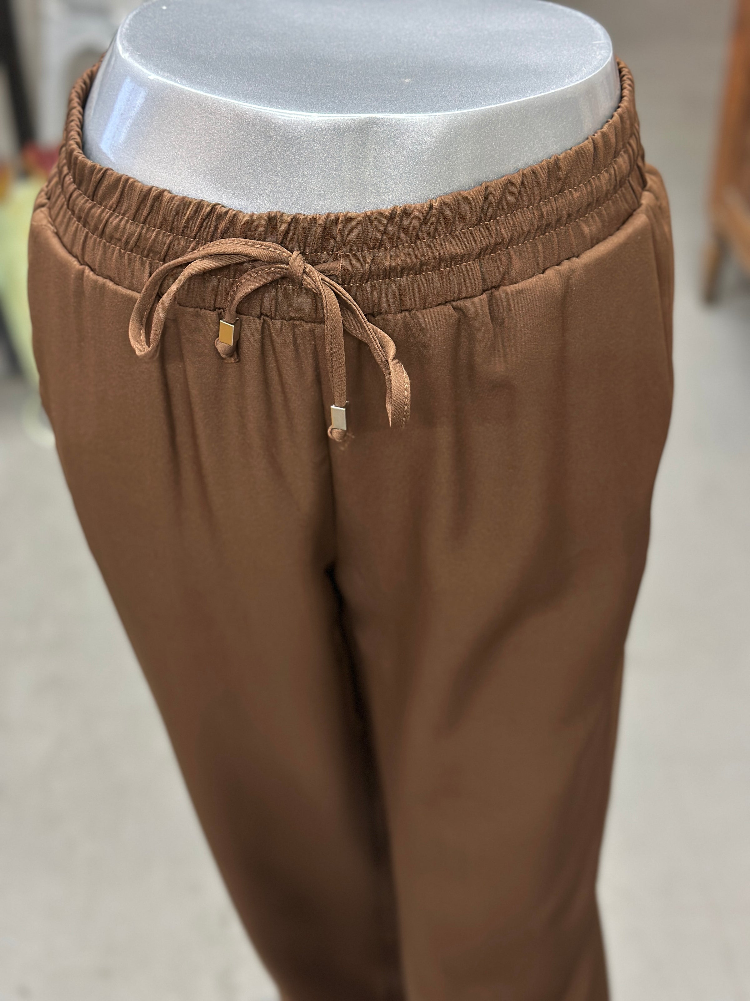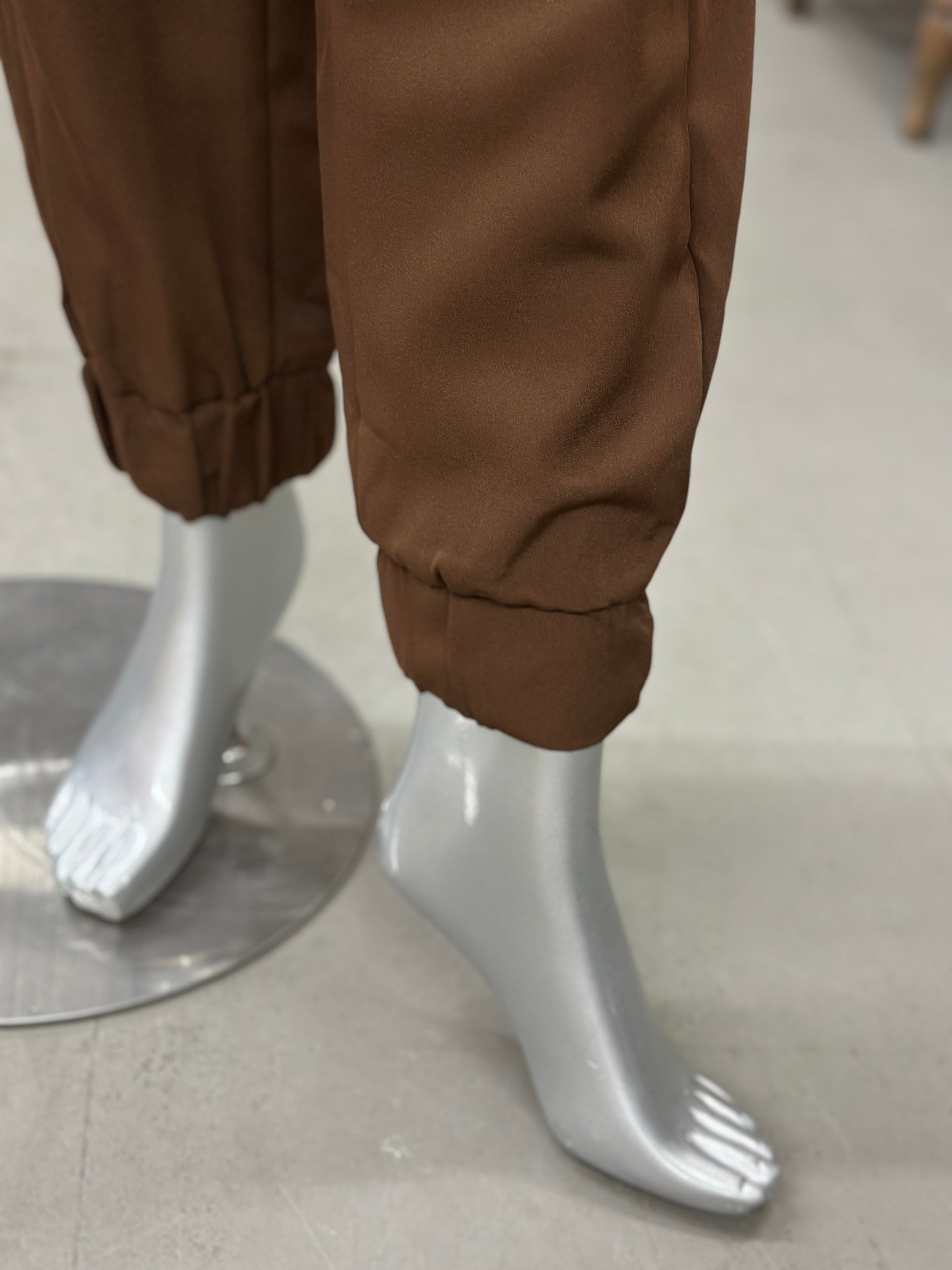 Women's Brown Drawstring Joggers with Ruched Ankle Cuffs